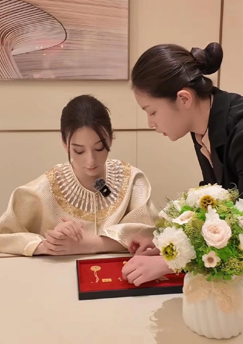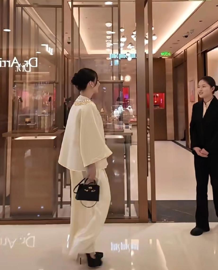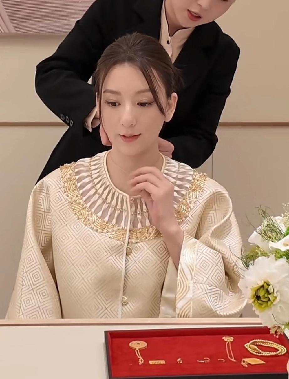 方媛生完三胎是越来越贵气了,最近一条视频中,方媛穿着一身金色新中式套装,手提爱马