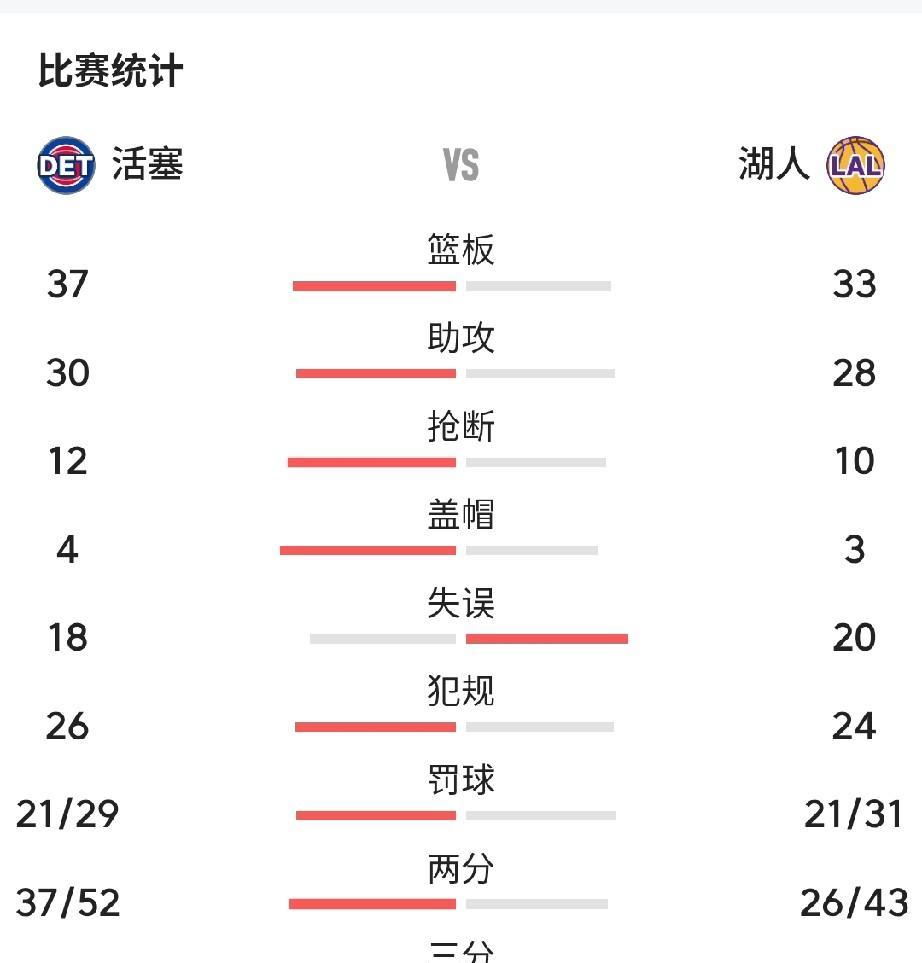 活塞西部5连客收官战,拿湖人出了口恶气。 贵为东部第一,这次西部客场之旅打的可不咋的,前两场赢了开拓者和国王还算凑合,接下来却接连被爵士和快船击败,如果最后一战再被湖人打败,那东部的尊严可就丢没了。 作为上一次活塞夺冠时的总决赛对手,活塞和湖人渊源可不浅。经历了多个赛季蛰伏后,活塞终于有实力和湖人掰手腕。西部之旅最后一战,坎宁安终于找回状态,豪取2双,27分11助,另加5板,表现丝毫不逊色于对面的东契奇。本场活塞替补席火力彻底被激活,萨瑟、霍兰二世和斯图尔特都拿到2位数得分,三人引领替补得分67分,打爆湖人替补席,湖人替补席只拿到34分,基本算是活塞的一半。东契奇空砍30分5板11助,詹姆斯是真老了,17投6中,仅有17分4板4助,竭尽全力也无法避免本队22分失利。