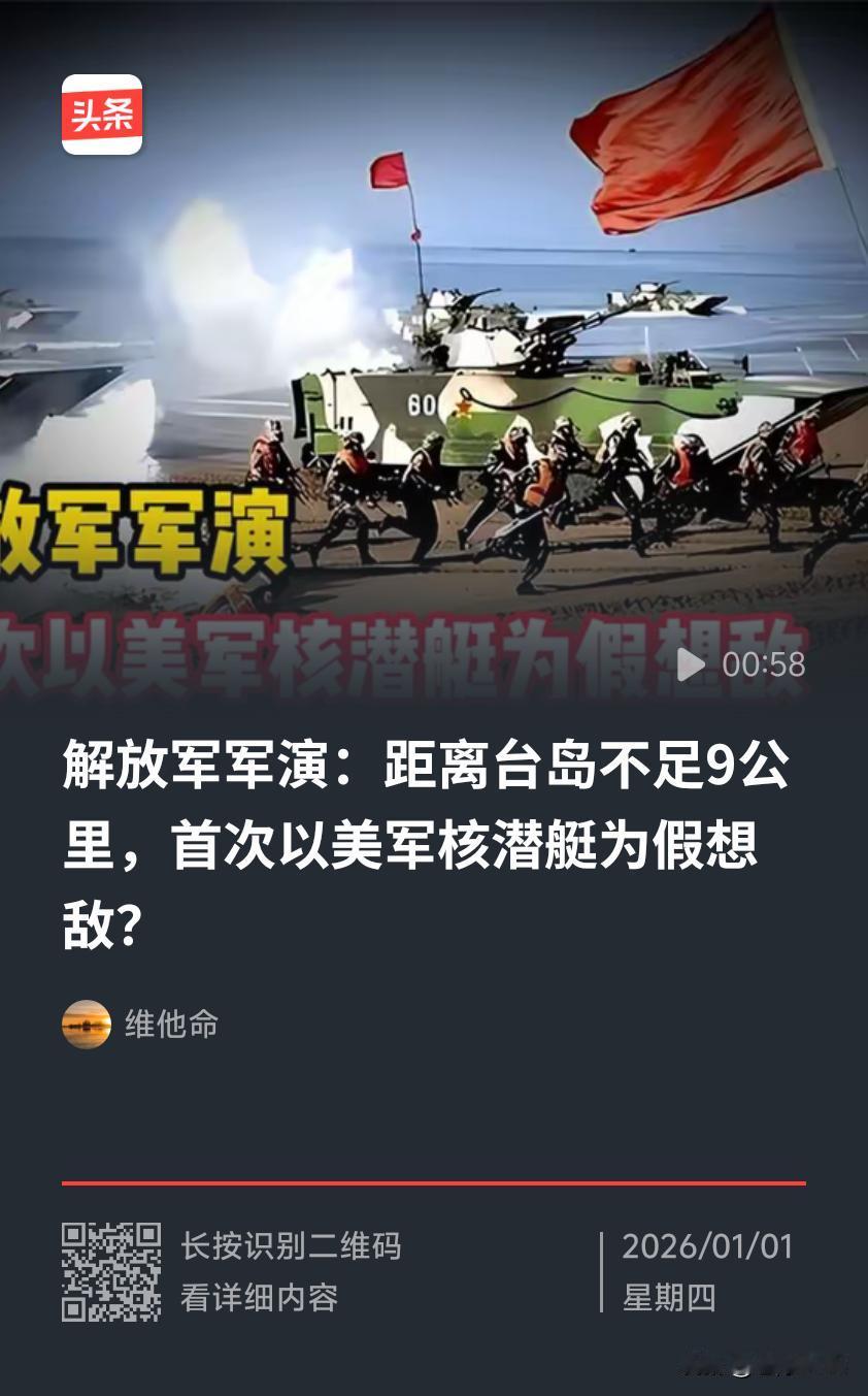 这句话突显解放军威慑“台独”分裂势力及外部干涉、捍卫国家主权和领土完整的决心。以下相关演习情况可作佐证: ● 多军种演习:2025年12月29日起,解放军东部战区组织多军种在台岛周边开展 “正义使命 - 2025” 演习,内容有海空战备警巡、夺取综合制权、要港要域封控和外线立体慑阻等,检验联合作战实战能力。 ● 抵近程度空前:多数据表明此次演习距台岛之近前所罕见。台媒称演习最近处距台湾岛仅4.8海里;复旦大学教授沈逸表示网民测算部分点位距台岛仅4.7海里;演习将北部边界推至距台湾本岛不足5海里处,且首次在七星岩海域划定实弹射击区。 ● 多方面展现实力:展示平战融合、训战一体能力,演习一开始就舰炮实弹射击,30 日实施远程火力实弹射击,“台独”相关目标均在解放军火力网内;围岛演训区“围三阙一”,“内封外拒” 遏制“台独”;大范围战场布局、联合慑压打击和立体进逼封控,演练夺取关键地域制空、制海权及远程精确打击能力。