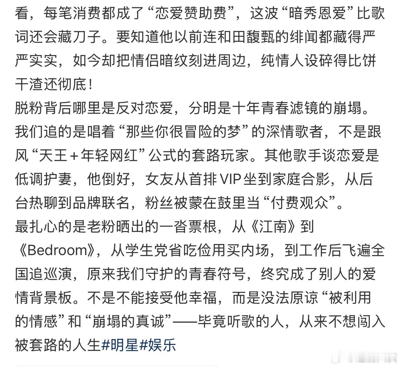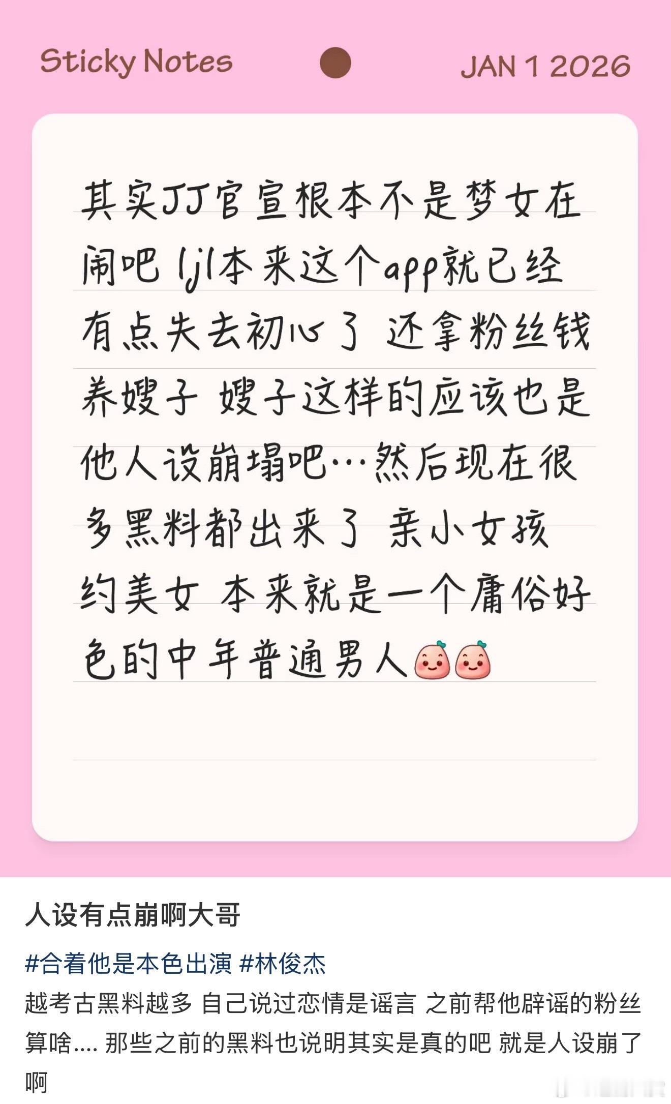 林俊杰人设刷到好多林俊杰粉丝脱粉原因不是谈恋爱而是接受不了他还在立人设。而且说