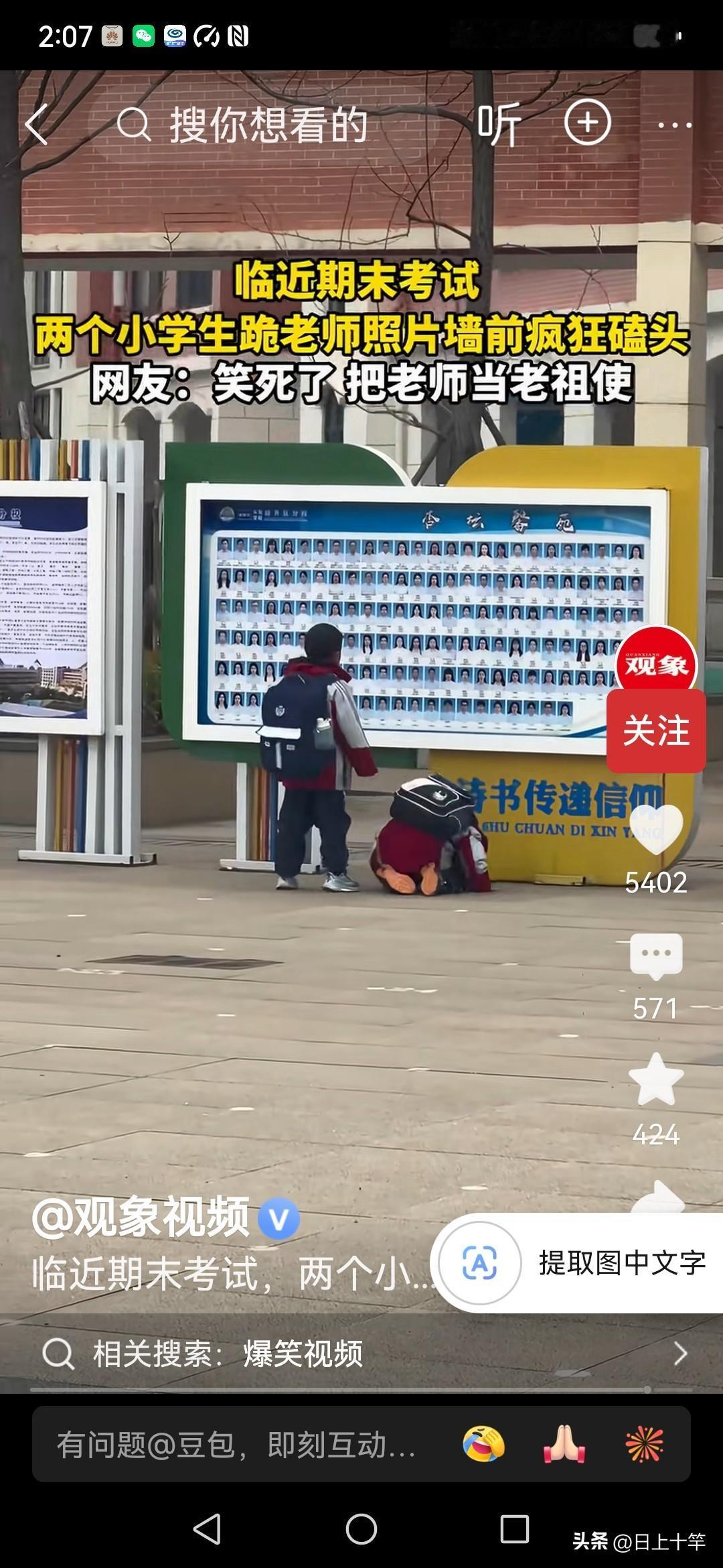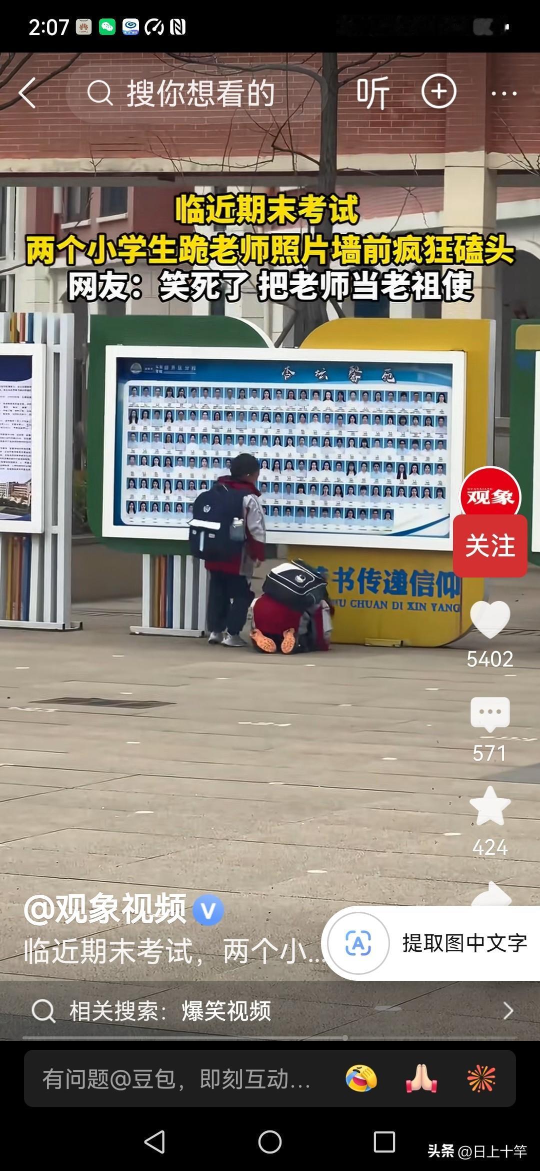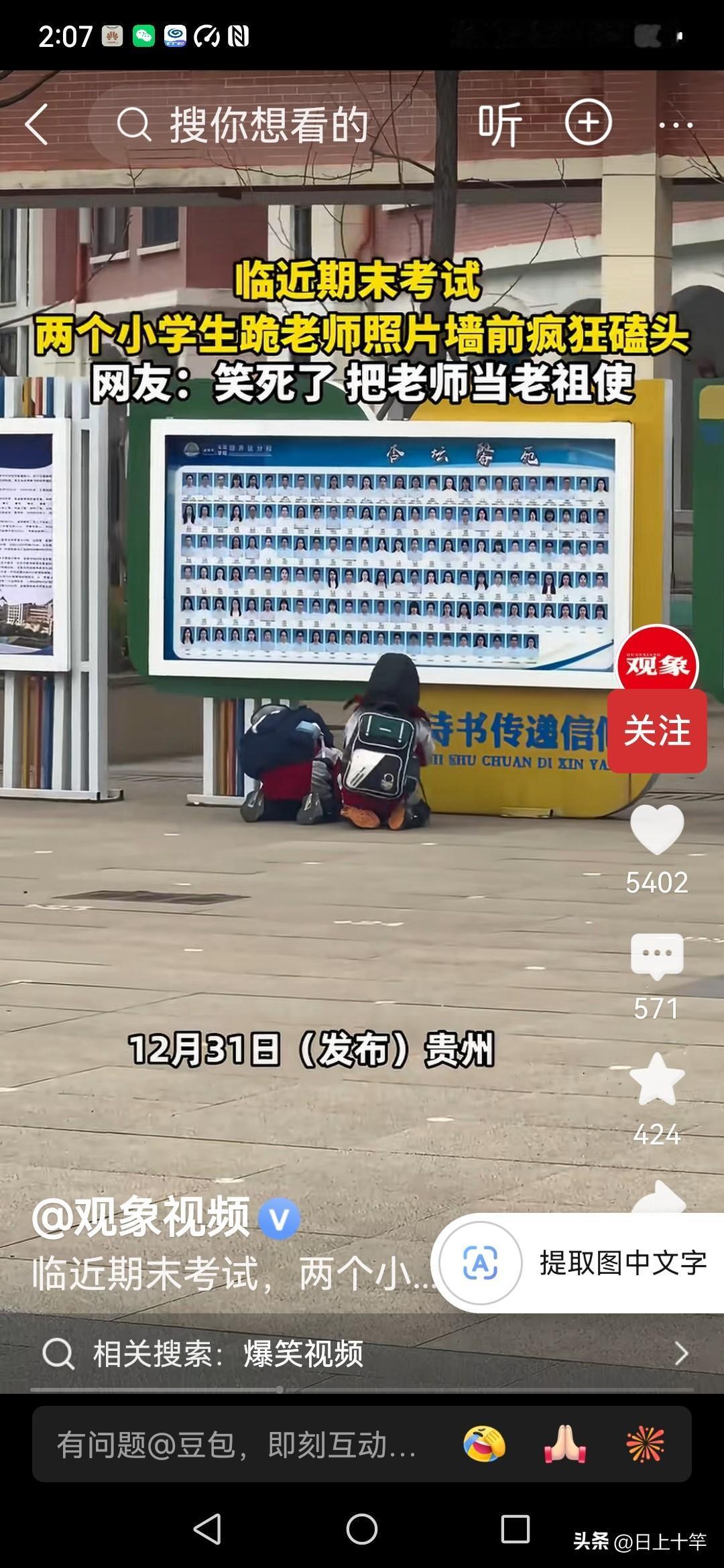 这是谁家的熊孩子,期末考试前想到这一招,给学校全体老师,跪拜磕头! 话说这是哪家学校,怎么把老师的相片密密麻麻地全部展出来了? 本来就有密集恐惧症,现在这两个熊孩子在相片墙前面这么一拜! 不知道的还以为这两孩子在磕头祭拜呢!