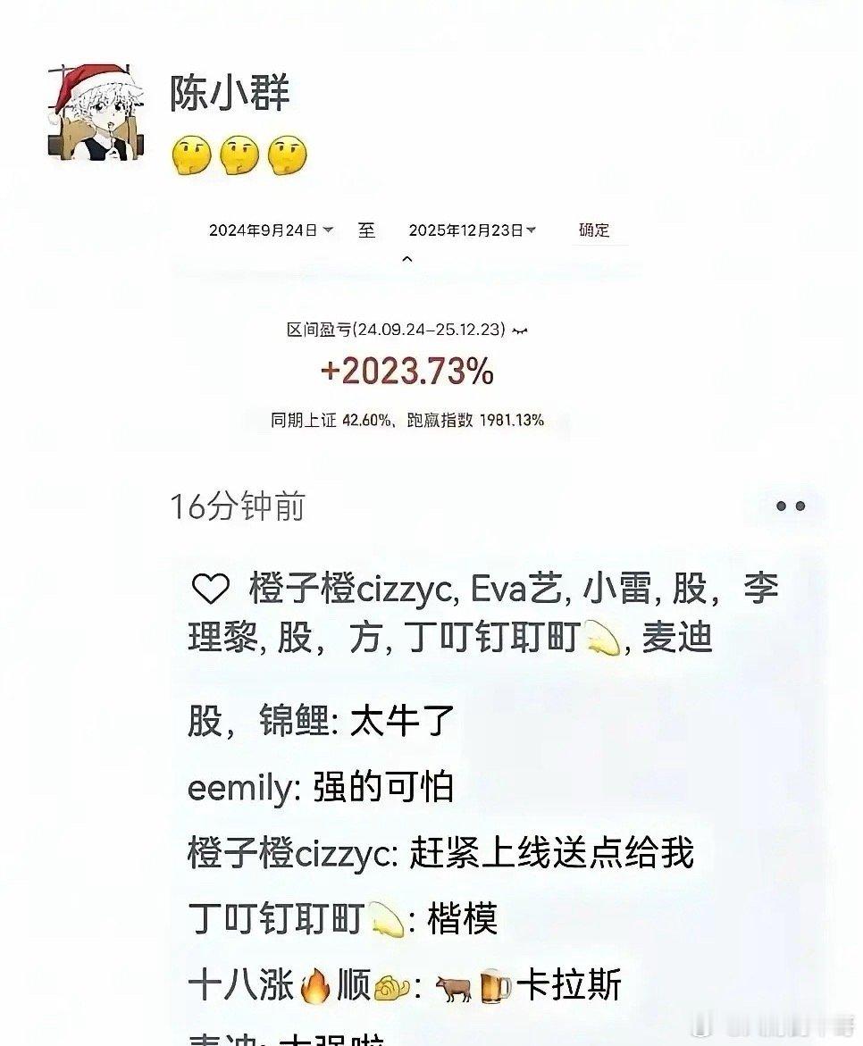 一边是陈小群20倍的年度收益震惊A股,一边是50万以下资金的散户今年盈利的不到15%.......很显然,和这几年的经济数据一样让人产生错觉,毕竟GDP涨了5个点,但绝大部分人的体感却是非常的差。股市今年大涨至 4000 点了,但真正跑赢指数的却没多少人。50万是分界点,50万以下的资金账户占到了散户90%,因为易中天为代表的科创涨的多,50以下玩不了,同时大家想的是翻几倍暴富,但实际翻几倍的就那些股票,不足5%,但如果是做波段,一次挣个20-30个点,看到不对就撤,其实很香了,但是资金量小的没有体感,这就是资金量决定了投资方式,你要说他错吧,每个领域都有幸运儿,都有成功概率。就像没钱人搏彩票,有钱人吃利息,彼此都不理解对方的理念。
