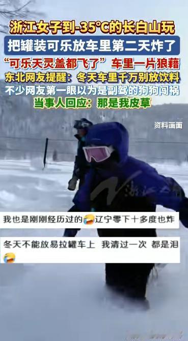 悲剧还是发生了!浙江一女子,自驾去吉林长白山旅游,不小心将一瓶饮料遗落在车内,次日一早,女子打开车门发现可乐竟然爆炸了,车内一片狼藉!网友:幸好可乐爆炸时她不在车内! 王女士(化名)怎么也没想到,一次普通的自驾旅行,会因为一瓶被遗忘的可乐,上演一场“小型爆炸现场”。 事情的起因是王女士趁着最近一段时间休息,于是她就从浙江出发,一路自驾,行程紧凑却不算疲惫,到达当地时已是傍晚,气温明显比南方低了不少,当天晚上,她简单收拾了一下车内物品,锁车回酒店休息,也正是在这个时候,一瓶没喝完的可乐,被她随手放在了车内,没再留意。 长白山夜里的低温,比她想象中更“狠”,第二天一早,王女士准备开车出门游玩,刚拉开车门,一股刺鼻的甜味混着气泡味扑面而来,还没反应过来,眼前的景象就让她愣在了原地,驾驶室和后排座椅上,到处都是深褐色的液体,车顶、玻璃、内饰被溅得一塌糊涂,像是被人故意泼了一整瓶饮料。 那瓶可乐,已经“阵亡”了,王女士检查后发现,可乐瓶并不是被人为挤压,而是整瓶在低温环境下发生了爆裂,瓶身裂开,瓶盖飞脱,碳酸饮料在密闭车厢里瞬间喷涌,把整个车内当成了“战场”,由于气温低、车门紧闭,液体一夜之间结冰又融化,留下的只有难以清理的糖渍和黏腻痕迹。 她当场哭笑不得,虽然人没受伤,但清理现场却成了大工程。座椅缝隙、空调出风口、车门内侧,全都没能幸,简单擦拭根本解决不了问题,最后只能联系当地洗车店,进行深度清洁,折腾下来,不仅耽误了行程,还额外花了一笔钱。 王女士将经历发到网上后,引发了大量网友留言,有人调侃,“可乐,在南方是饮料,在东北是炸药”,也有人表示感同身受,称矿泉水、功能饮料在低温环境下同样可能冻裂,还有网友提醒,车内空间密闭,一旦发生爆瓶,若正好有人在车内,存在一定安全隐患。 不少理性评论也指出,这并非可乐“质量问题”,而是物理现象,含气饮料在低温下结冰,体积膨胀,加上瓶内二氧化碳压力变化,很容易导致瓶体破裂,尤其是在昼夜温差大的北方地区,更容易发生类似情况。 事后,王女士也总结了经验,在寒冷地区自驾,车内不要存放任何液体饮料,尤其是碳酸饮料和密封瓶装水,看似不起眼的小习惯,可能就会带来不必要的麻烦。 一瓶被遗忘的可乐,毁了一次清晨的好心情,也给不少准备北上旅游的网友提了个醒。有些“南方经验”,到了极寒环境下,真的不太管用。 信息来源 :浙江之声