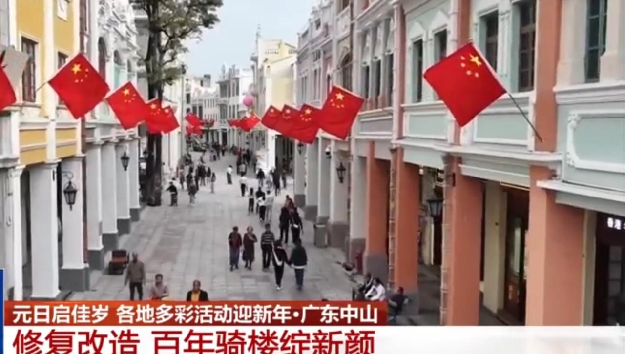 广东中山骑楼的新年新貌 这支短片聚焦广东中山的百年骑楼老街,经过修复改造的骑楼群在新年焕新亮相,彩色的骑楼建筑搭配着悬挂的五星红旗,氛围感十足。街道上行人络绎不绝,老建筑的岭南风情与新年的热闹气息交融,既保留了历史文脉,又以崭新面貌迎接新年,展现出城市更新与传统年味的完美融合。
