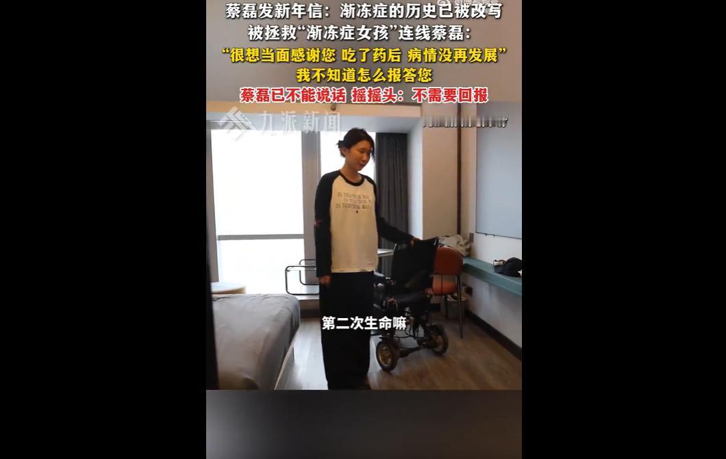 2026年元旦,29岁渐冻症患者小刘的康复新闻刷爆全网。 她服用蔡磊团队推动研发的靶向药后,从瘫痪在床、生活不能自理,逐渐恢复到能独立站立、独居生活,甚至能兼职工作,肺功能和行动能力都明显好转。 不过欣喜之余,她也担心药效没法长期维持,这种焦虑是很多康复患者的通病。 让人动容的是,帮无数患者点亮希望的蔡磊,自己却已到渐冻症终末期。 他的身体功能评分只剩个位数,全身瘫痪,只能靠眼球活动交流,每天靠呼吸机维持生命,还得忍受神经剧痛和窒息风险。 可即便这样,他每天仍用眼控仪工作12小时,推动渐冻症药物研发、临床试验和普及,用超强意志对抗身体的“冰封”。 面对小刘的致谢,蔡磊淡然表示“无需报答”,还称她是“200年来最幸运的人”,嘱托她珍惜重生、活出价值。 在他眼里,“能救生命就是成就,最差也是为所有病人奉献自己”,这份坚守真的太让人感动了。
