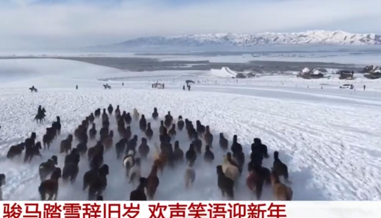 新疆昭苏的雪原新年盛景 新疆昭苏的雪原之上,新年氛围浓烈又壮阔。游客们身着厚装,面带笑意接受采访,分享着对雪原盛景的赞叹;成群骏马在茫茫白雪中奔腾,马蹄踏起漫天雪雾,与远处的雪山、河流构成一幅雄浑的画卷。“骏马踏雪辞旧岁”,这独属于草原的迎新方式,将豪迈的西域风情与新年的喜悦完美融合。