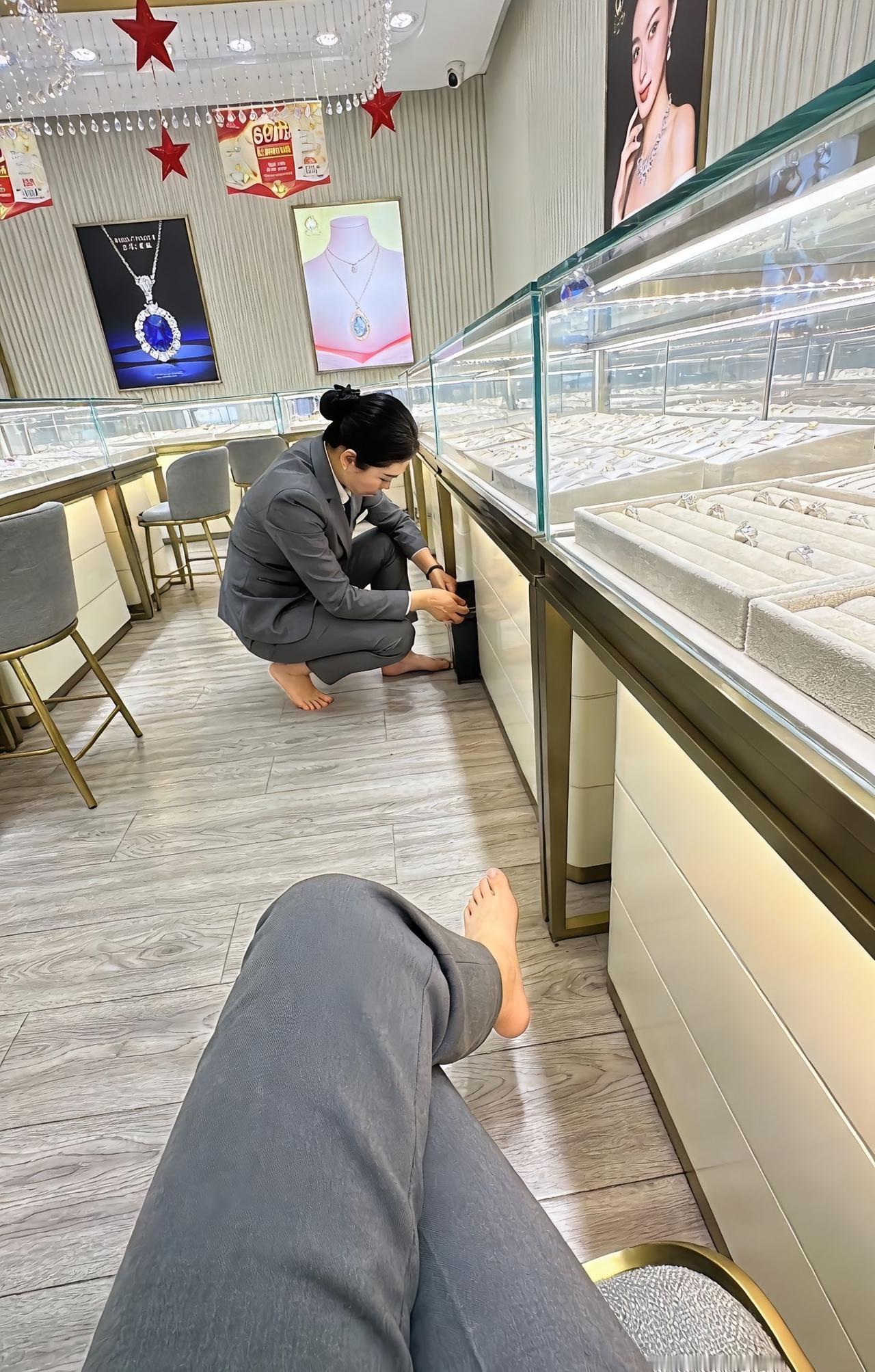 逛珠宝店偶遇离谱一幕!店员小姐姐们都光脚工作,瞬间脑补出“珠宝店的隐藏规矩”~咱就是说,难道这是为了避免刮花珠宝?有没有业内人士来揭秘一下? 珠宝店趣事 职场奇葩操作