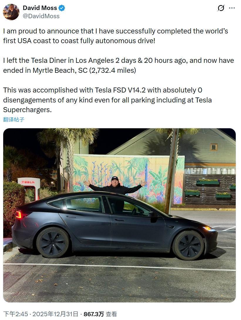 特斯拉车主首度实现“全程自动驾驶横穿美国” 马斯克:酷,目前,关于特斯拉的自动驾驶技术在美国应该还是少量交付,中国的L3自动驾驶技术也已经进行了商用落地,所以这一场自动驾驶技术的发展,其实就是中美科技的对决!谁未来才是全球在自动驾驶技术最先进的技术?谁就主导未来自动驾驶技术的定价权!