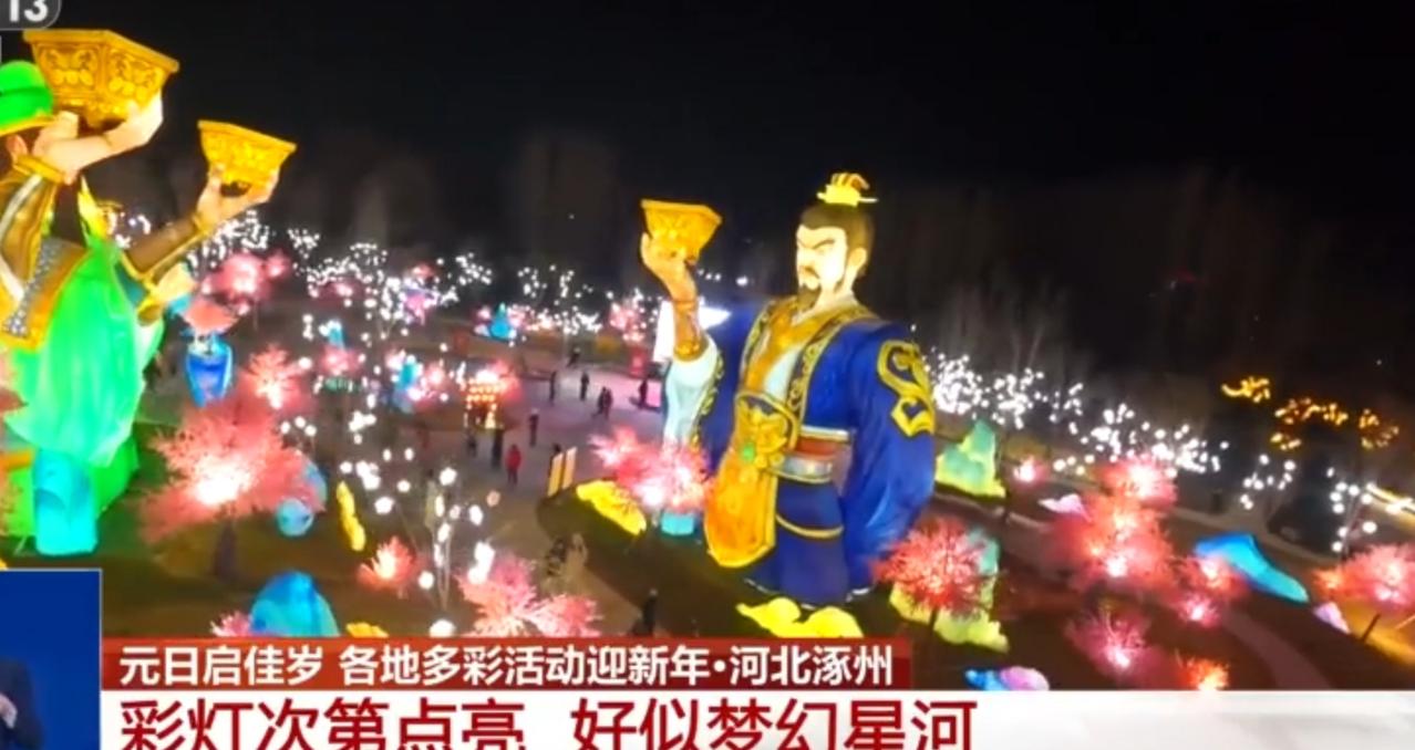 元日启佳岁,河北涿州通会灯市以满溢的年味与文化底蕴,打造环京跨年的梦幻体验。古建造型的巨型灯门流光溢彩,成为灯市的醒目入口;刘关张桃园三结义主题花灯栩栩如生,将三国文化融入灯景;万千彩灯次第亮起,红粉花枝灯组与人物灯影交织,夜色中宛如星河洒落,让民众在沉浸式的光影盛宴里,感受涿州独特的新年韵味与文化魅力。