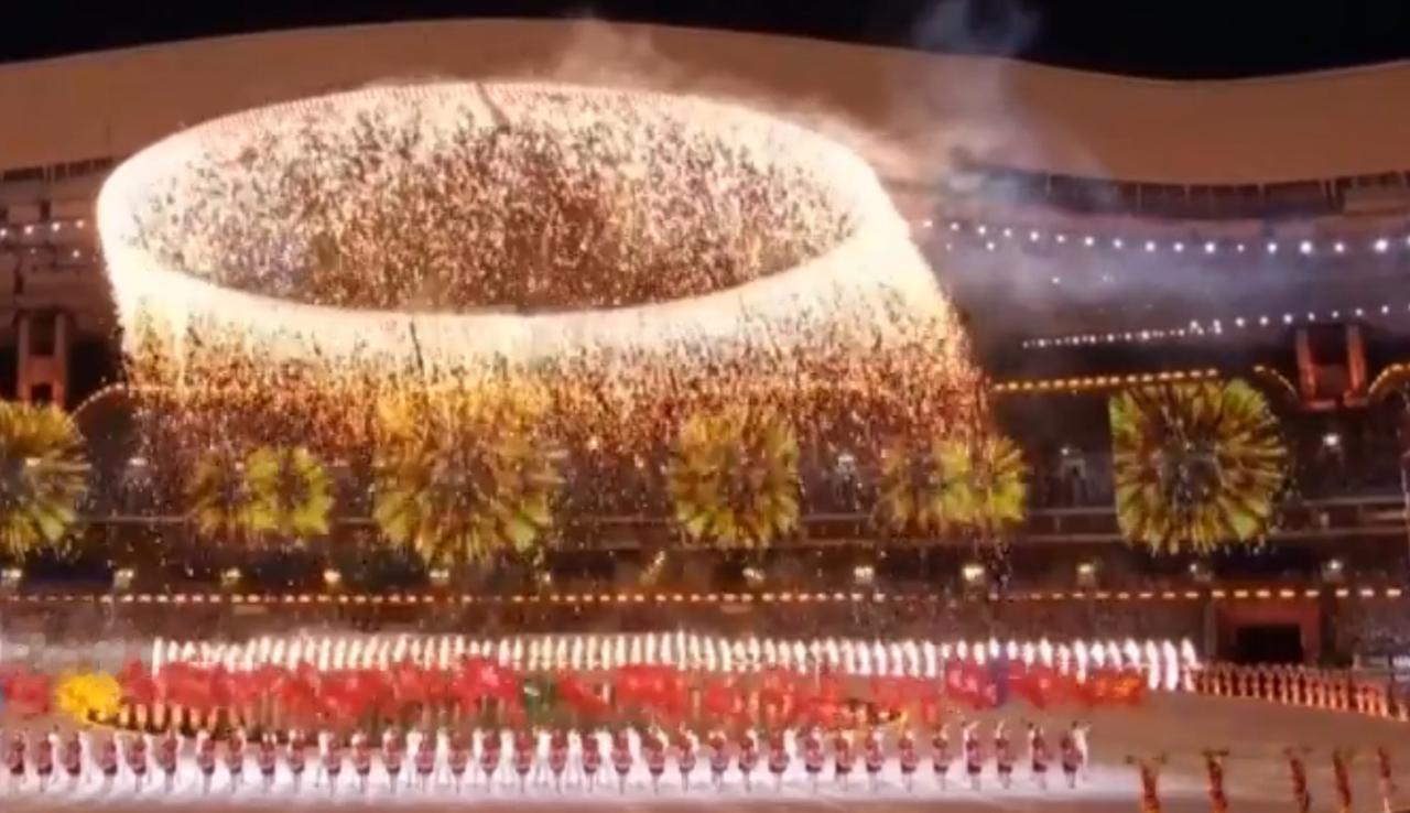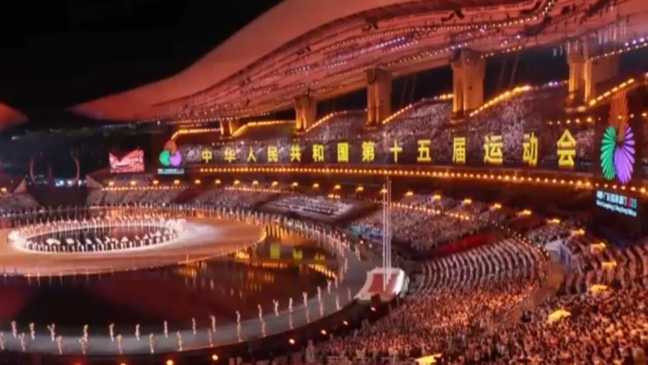 2026年的岭南大地,城市与盛会交织出动人画卷。珠江穿城而过,两岸高楼鳞次栉比,勾勒出现代化都市的鲜活轮廓;第十五届全运会的赛场内灯火璀璨,巨型标语彰显着赛事的庄重与热烈;绚烂的烟火如星河倾泻,与整齐的表演队伍相映,将全运盛会的激情与活力推向高潮,也书写着大湾区体育事业的崭新篇章。
