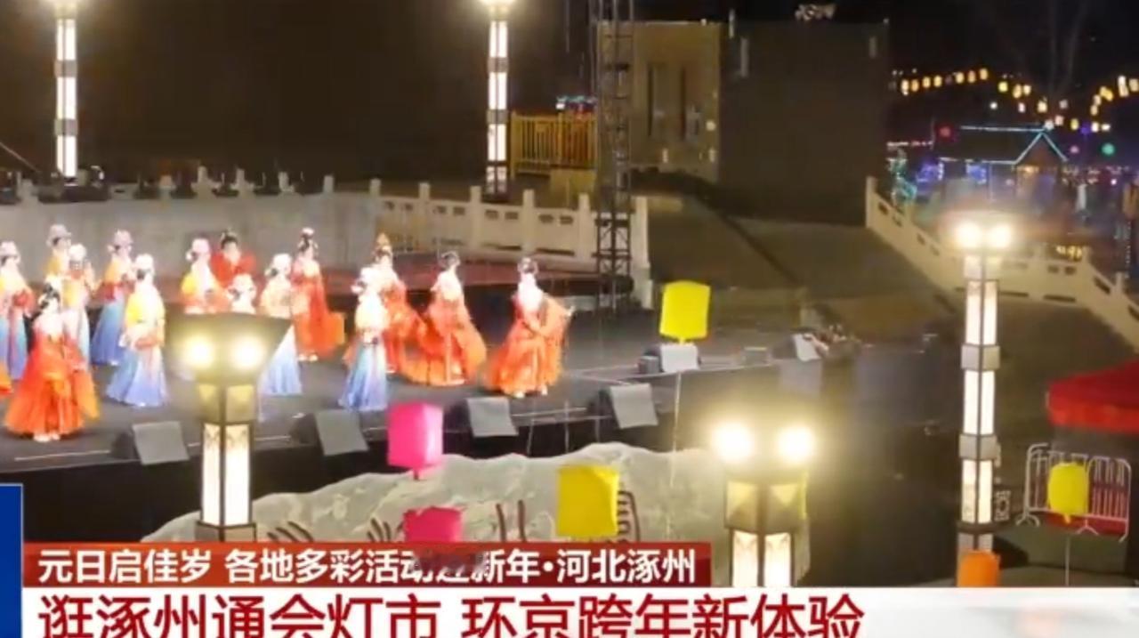 元日启佳岁,河北涿州以通会灯市打造环京跨年新体验。夜色里,灯市现场人头攒动,璀璨灯光将市集映照得热闹非凡;舞台上身着传统服饰的表演者带来特色演出,尽显民俗韵味;巨型锦鲤花灯造型精美,色彩绚丽的灯组勾勒出浓浓年味。这场融合传统灯市与特色演艺的跨年活动,让民众在沉浸式体验中感受涿州的民俗魅力与新年氛围。