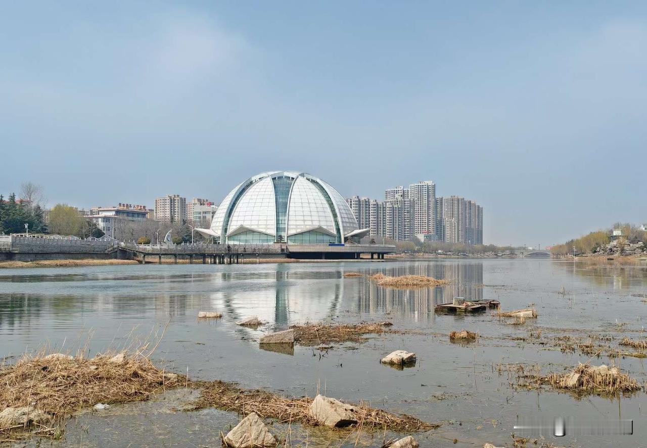 早起,看冬日的泉河。两岸,没有春天的繁花似锦;没有夏天的水草🌿丰茂,绿树成荫;没有秋天的秋水伊人,碧云天,黄叶地……只见远处的高楼,近点的科技馆,如老龟饮水别有风味……