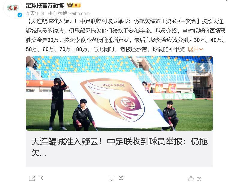 🔥“冲甲成功却欠薪,中国足球的笑话又更新了!”大连鲲城刚升级就翻车,210万奖金+100万冲甲奖全泡汤,中足联竟靠“银行流水”放水?🔥刚冲甲就欠薪,俱乐部玩“空头支票”套路:承诺豪华奖金,兑现却只给零头!中足联审核形同虚设,靠基本工资流水就过审,规则被当废纸?1️⃣ 球员维权三板斧:留存证据+集体申诉+拒绝签字2️⃣ 中足联整改方向:绩效工资必须纳入审核+严查阴阳合同3️⃣ 俱乐部生存法则:量力而行,别把球员当赌徒,当球员拼到冲甲成功,却拿不到应得奖金,这比输球更让人心寒!中国足球要崛起,先得学会尊重规则、尊重劳动者。你觉得中足联该重罚欠薪队吗?评论区站队