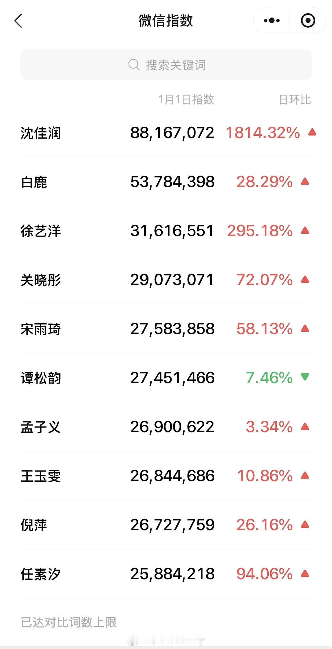 张凌赫昨日🫘指数创历史新高,数据翻了两倍,好火啊新年第一天就这么火