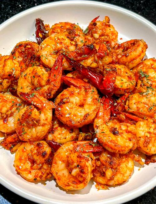 2️⃣.黄油蒜香虾,10分钟快手菜,鲜香弹嫩,出锅撒欧芹碎。