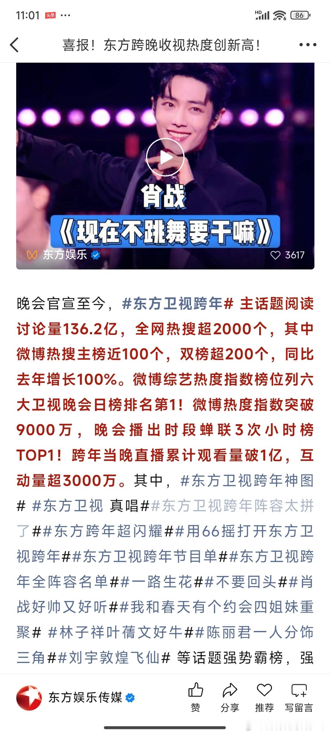 肖战工作室背景是红海东方卫视跨年vx战报:播出当晚收视热度双高,在全国卫视跨年档实力领跑。收视数据全面告捷,中国视听大数据(CVB)截至24:00平均收视0.642、收视份额2.515,位列所有卫视跨晚收视前二,同比去年逆势提升近25%,不仅稳居省级卫视前列,更斩获2025年东方卫视全节目收视年度第一,实现断层领先。区域收视表现突出,上海本地收视超8.88、份额超25.6%,创下东方卫视本地年度收视新高。肖战《得闲谨制》创东方跨晚最高收视!肖战零点压轴献唱《不要回头》《现在不跳舞要干嘛》,刷新跨晚最高收视份额。肖战时隔五年重返东方跨年舞台,凭多元表现力点燃全场,肖战学说上海话肖战推荐得闲谨制 等多个词条上榜微博热搜!肖战工作室背景是红海