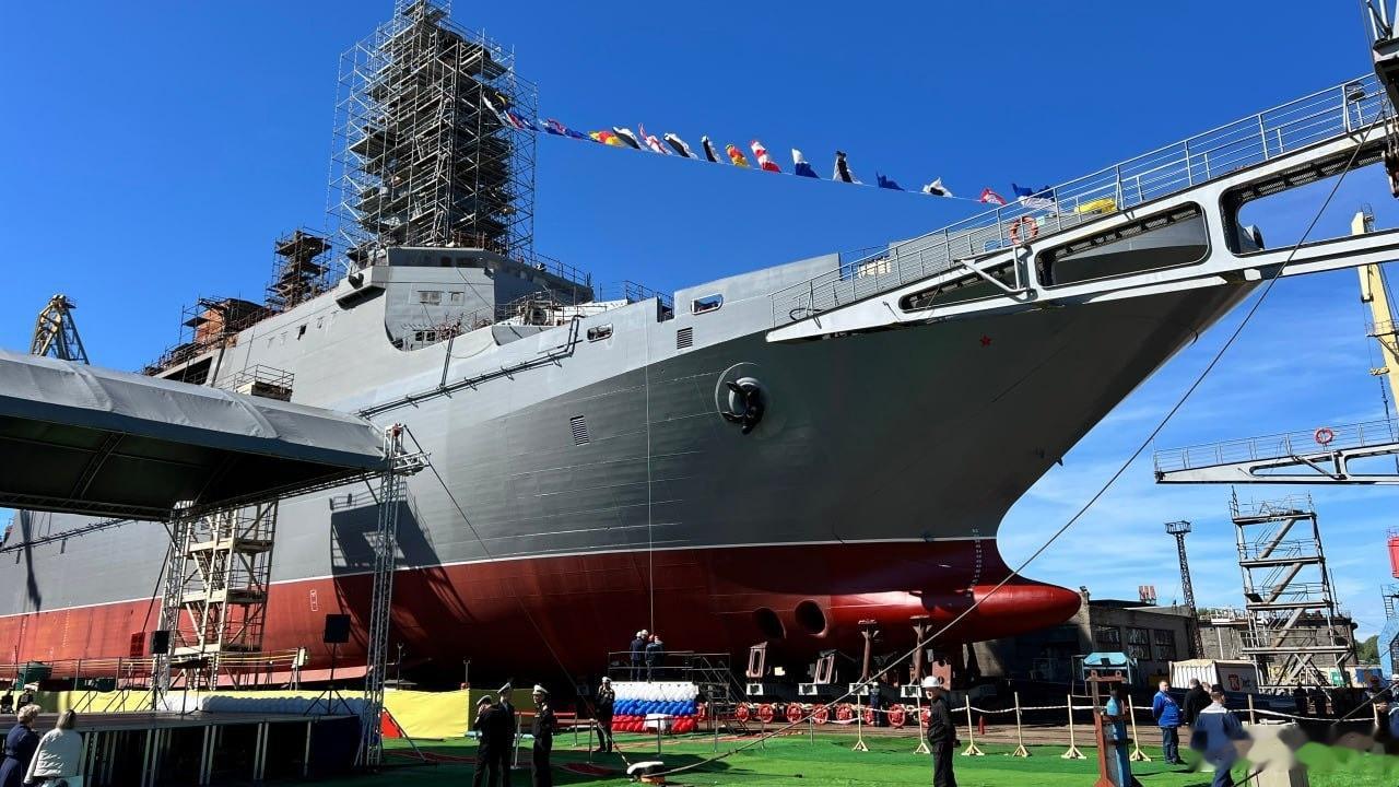 2025年俄罗斯海军新型战舰建造、下水和服役情况。已服役:—955A型“北风之神”级战略核潜艇“波扎尔斯基公爵”号(14,720吨);—636.3型“华沙夫人”级柴电潜艇“雅库茨克”号(2,350吨);—677M型“拉达”级柴电潜艇“大卢基”号(1,765吨);—23550型巡逻舰“伊万·帕帕宁”号(8,500吨);—22160型巡逻舰“维克多大帝”号(1,800吨);—21631型“暴徒-M”级小型导弹舰“斯塔夫罗波尔”号(949吨);—22800型“红带蛛”级小型导弹舰“台风”号(870吨);—12700型海上扫雷舰“阿法纳西·伊万尼科夫”号(890吨)。已下水:—战略核潜艇“哈巴罗夫斯克”号(估计约10,000吨);—885M型“亚森-M”级巡航导弹核潜艇“彼尔姆”号(8,600吨);—11711M型大型登陆舰“弗拉基米尔·安德烈耶夫”号(8,000吨);—22350型护卫舰“阿梅利科海军上将”号(5,400吨);—12418型导弹艇“射手”号(580吨);—12700型海上扫雷舰“极地”号和“德米特里·雷索夫”号(各890吨)。已开工:—11711M型大型登陆舰“谢尔盖·卡巴诺夫”号(8,000吨);—12700型海上扫雷舰“谢尔盖·普列米宁”号和“列昂尼德·巴利亚金”号(各890吨);—两艘21980型“小乌鸦”级反破坏艇(各139吨)。括号内标注为满载排水量,潜艇数据为水面排水量。俄罗斯海军俄罗斯制造