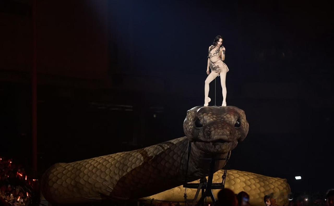 蔡依林在台北Pleasure演唱会上骑着巨蟒而来,很多人都被震撼到了。这些年来,蔡依林的专辑里用了很多关于蛇的元素,这次特意斥巨资把蛇搬到演唱会现场。 虽然视觉上是挺稀奇,但个人感官就很不喜欢蛇,黑不溜秋的,眼神虎视眈眈的,看着就头皮发麻,浑身不舒服。