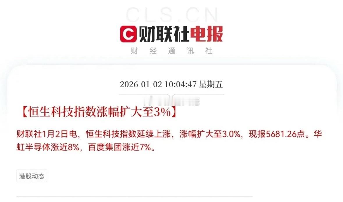 稳了!稳了!开门红稳了!利好来了!节后大A有望中大阳线了!满仓的股民们可以期待12连阳了……就在刚刚!港股率先开盘了,走势已经气势如虹了,恒生指数大涨超2%,恒生科技指数大涨近3.5%,国产GPU四小龙之一壁仞科技上市首日大涨超100%,华虹半导体大涨超8%,百度集团大涨近7%,此刻股民们已经按捺不住兴奋的心情了,这是对于A股来说是大利好消息,港股的上涨给还在假期中的股民带来了惊喜,带来了信心,尤其是壁仞科技与华虹半导体的大涨,可能会刺激A股相关板块,如国产芯片、半导体设备等有望被点燃,总而言之,港股大涨对A股短期情绪和结构性板块有非常大的提振作用,再结合节后市场流动的大幅增加,不出意外的话A股要高开了!股民们!坐稳扶好!受港股大涨影响,预计A股节后第一个交易日要起飞了,高开高走稳了!恭喜满仓的股民们,准备好吃大肉吧!