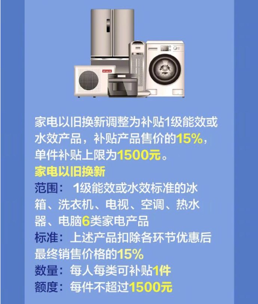 2026国补怎么补 家电以旧换新调整为补贴1级能效或水效产品,补贴产品售价的15%,单件补贴上限为1500元。家电以旧换新范围:1级能效或水效标准的冰箱、洗衣机、电视、空调、热水器、电脑6类家电产品标准:上述产品扣除各环节优惠后最终销售价格的15%数量:每人每类可补贴1件额度:每件不超过1500元