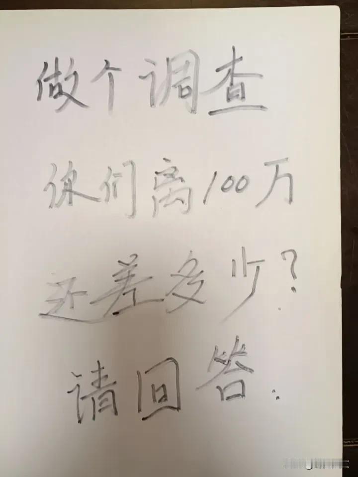 做个调查,你们离100万还差多少?我还差100万[捂脸][捂脸][捂脸]