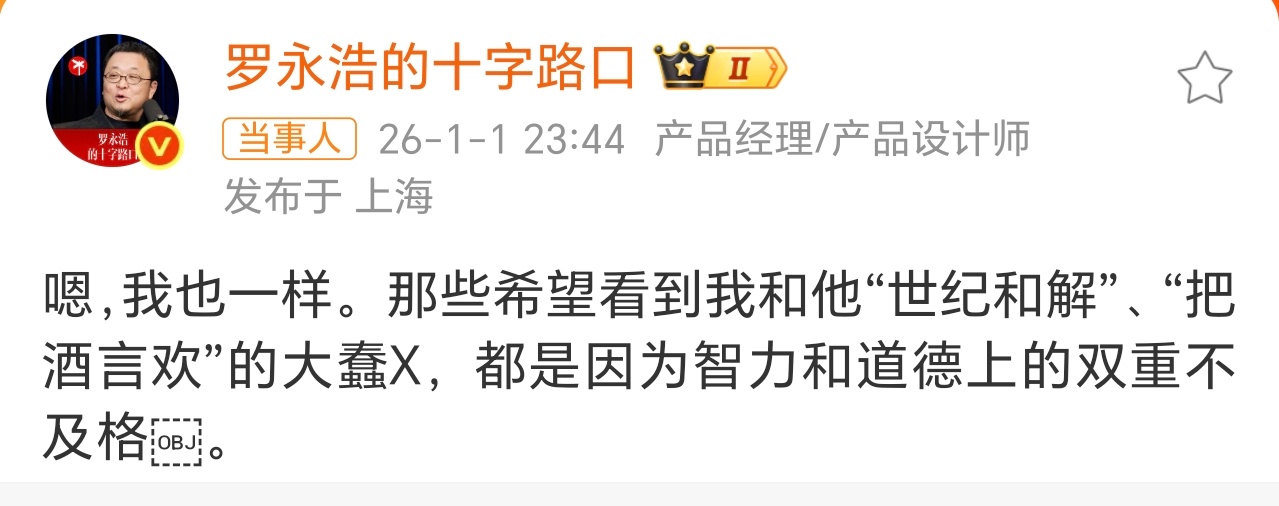 罗永浩回应是否与王自如和解这两人不出意外就是老死不相往来了,除非,资本的力量强到两个人不忍拒绝,哈哈哈……