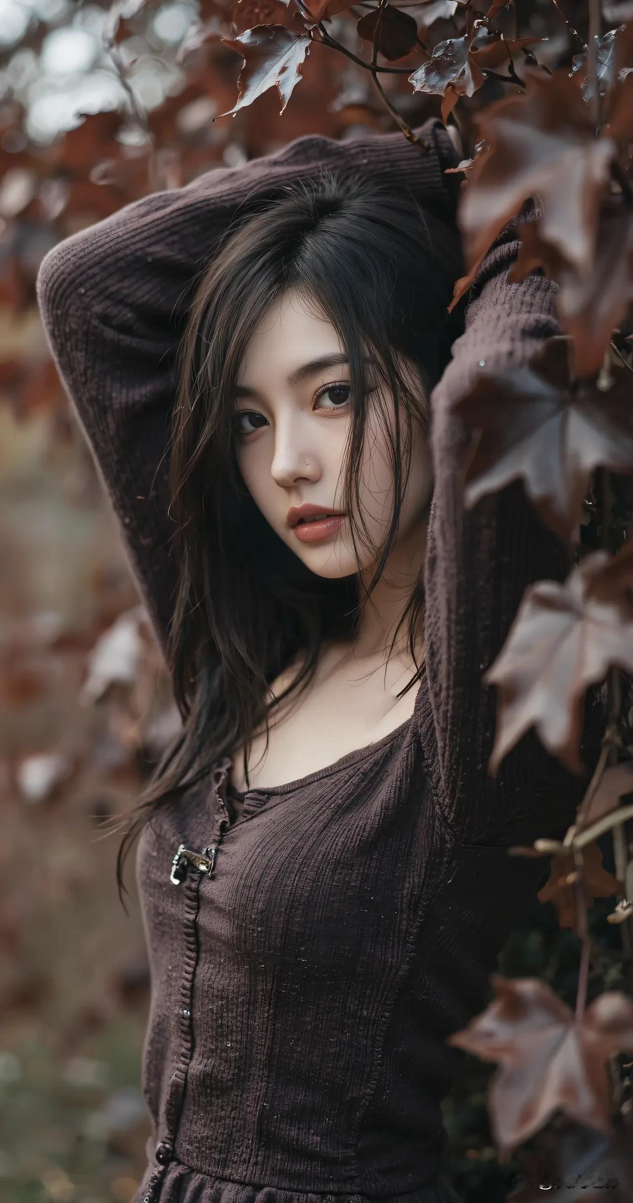 光之影 秋日私语,红叶映衬下的少女,温柔如水。 秋日少女照 秋日温柔光影