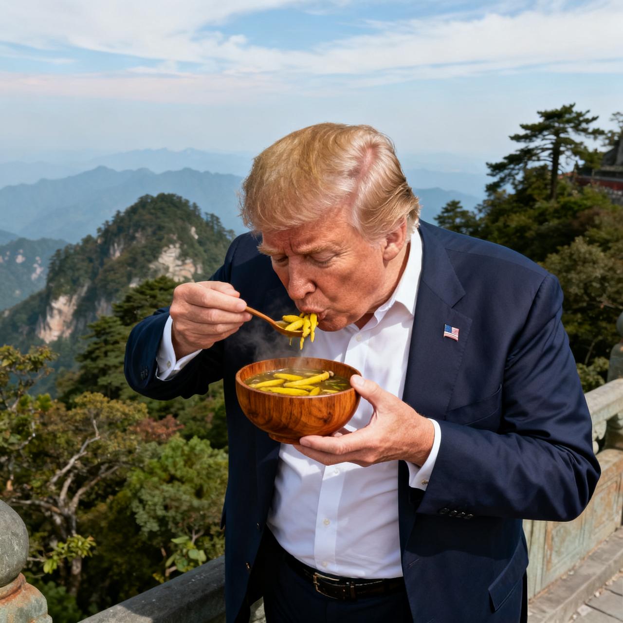 真心建议特朗普, 来武当山上住些天…… 据《华尔街日报》1月1日消息,特朗普每天吞325毫克阿司匹林,是医学建议剂量的4倍,理由是要让血液“清澈稀薄”。 这老哥把他做生意的“量大管饱”逻辑,硬生生搬到吃药上了。 医学砖家们,苦口婆心劝他,高剂量易出血,他倒好,手背淤青了、还嘴硬“基因好”。 放着锻炼嫌无聊,靠吃药续命,活脱脱把养生、搞成了真人秀。 真心建议他,来咱武当山住些天。 咱这儿没有猛药,只有清晨的太极、山涧的泉水,还有道家“顺其自然”的养生经。 不用算剂量,不用对着镜头侃大山,就盘着腿儿、晒晒太阳,喝碗道家养生黄精汤,保准比靠阿司匹林“洗血”舒坦。 毕竟健康这事儿,不是剂量越大越灵,慢下来才是王道。 最想对自己说的一句激励的话是什么