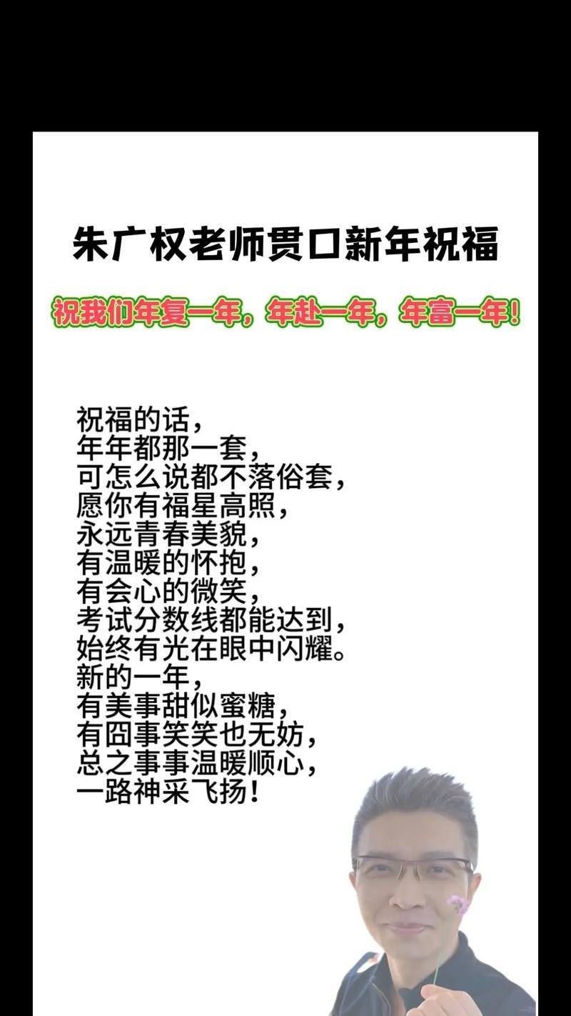1月1日朱广权的2026新年祝福刷屏了,不愧是央视押韵天花板,文笔和意境直接拉满! 暖心祝福句句戳心:心中有暖阳,知己在身旁,能奔赴山海也能静守日常;左手握成功,右手揽平常,脚踏实地心飞翔。还有超实在的心愿:多吃不胖,皱纹减少,发量增加,平安健康。更有底气满满的期许,纵有疾风,也能昂首做自己的精神支柱。 网友直呼这哥一如既往的稳定发挥,文字温柔又有力量,把新年所有美好愿景都写透了。这份祝福不花哨不浮夸,走心又精准,愿我们都能如祝福所言,岁岁安然,步步生光✨