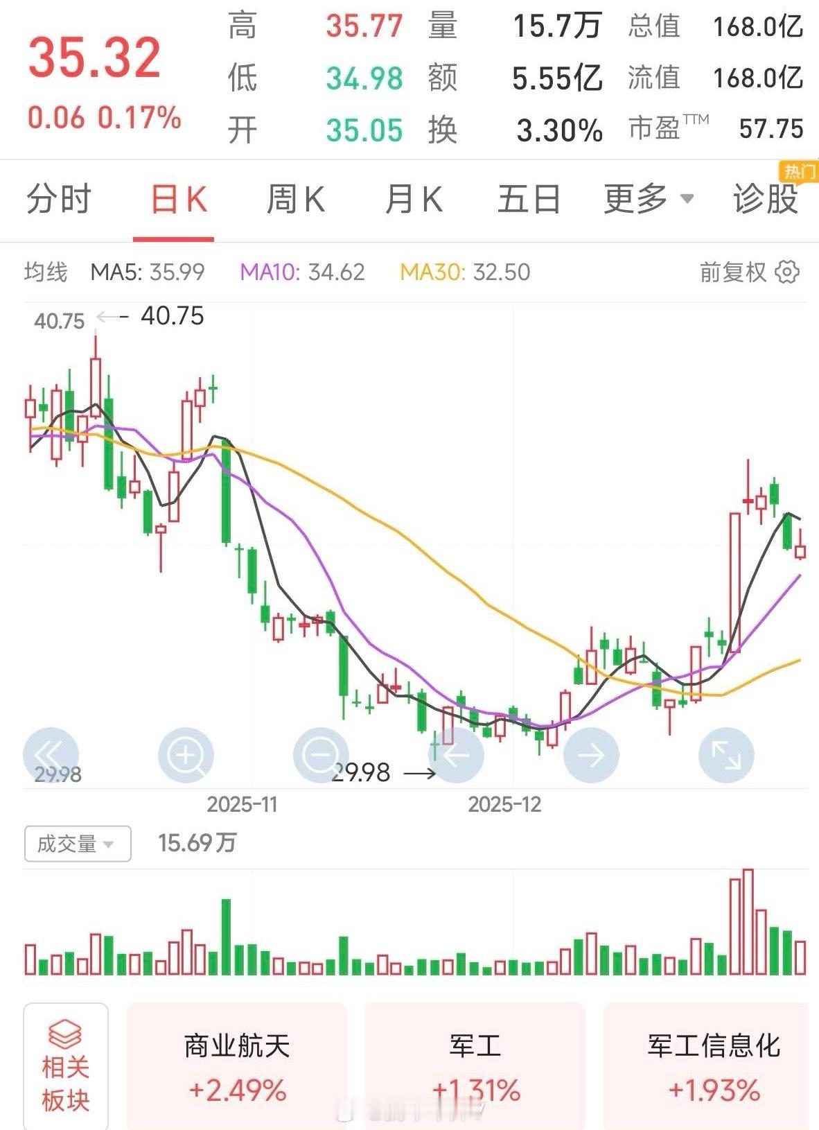 2026年1月2日因为一个粉丝朋友在后台私信问到2025年上半年分享过的一只军工票“鸿远电子”,今天就索性再加上“火炬电子”,“中国中免”一起给到一点建议给大家。鸿远电子,上半年在62元这个压力位置承压,也是周线的强压力位,上不去那么就向下整理蓄力,经过十月和十一月向下挖坑,十二月开始向上爬升,周线压力位置也下移,目前K线已经顺利突破周线压力,下一步75元~80元这个目标价可以期待!火炬电子,前高40元是一个重要压力位,几次触碰到之后就承压回落,这一次直接挖了一个深坑之后出现一颗涨停大阳线,最最近五天震荡洗盘。接下来突破40元冲到45元的概率就很大了!中国中免,元旦期间海南旅游太过火爆,大量游客抢购免税店的商品!这是实打实的营收大增!对于免税龙头是大利好!中免历史股价最高点400元,跌至最低52元,最近,股价在一百元下方反复拉扯,蓄势!大概率,元旦节后突破一百元能一气呵成!后面高度可以先看150元,顶格向200元看齐!之前说的一百元目标价很可能马上就要被踩在脚下了!元旦节后,春节之前。商业航天估计能继续维持炒作行情!(政策持续出台刺激、落地执行速度也非常之快!)另外,人形机器人,Ai应用(软件),年底各种利好消息与政策支持,也会出现脉冲行情,也许商业航天里面的资金只要一撤退,这俩板块就能星星之火可以燎原!