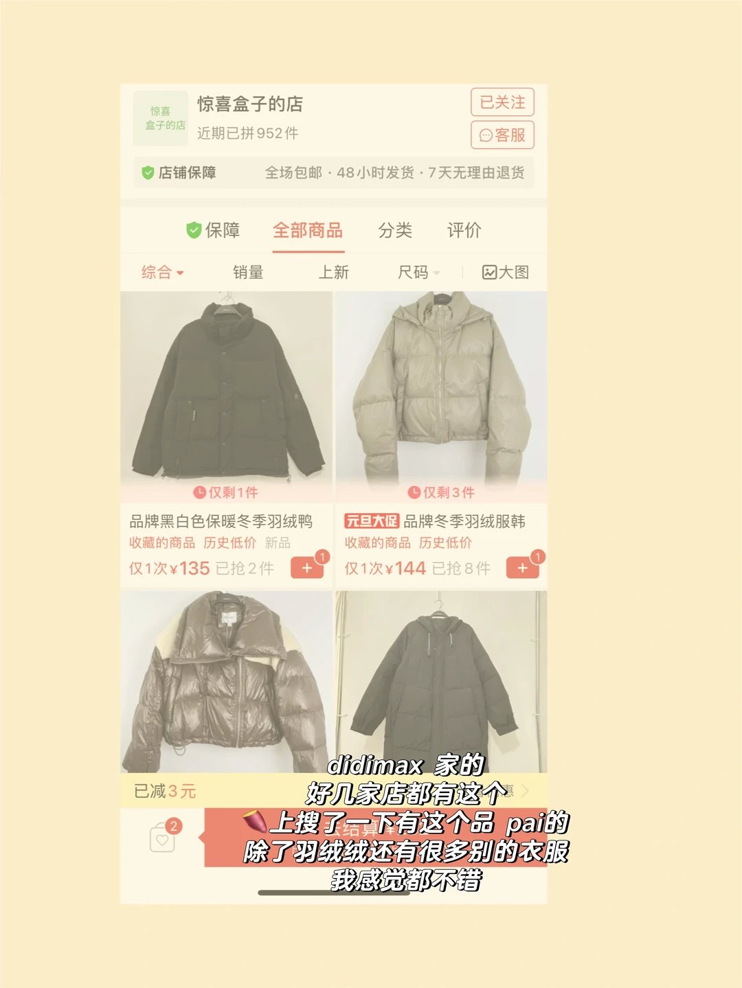大家好!祝大家2026年快乐🎆🎆 万事如意!天天开心🥳 一起继续买买买 天一下就冷了耶,分享几家羽绒服的店铺给各位姐妹~希望大家都暖暖和和过冬天❄️