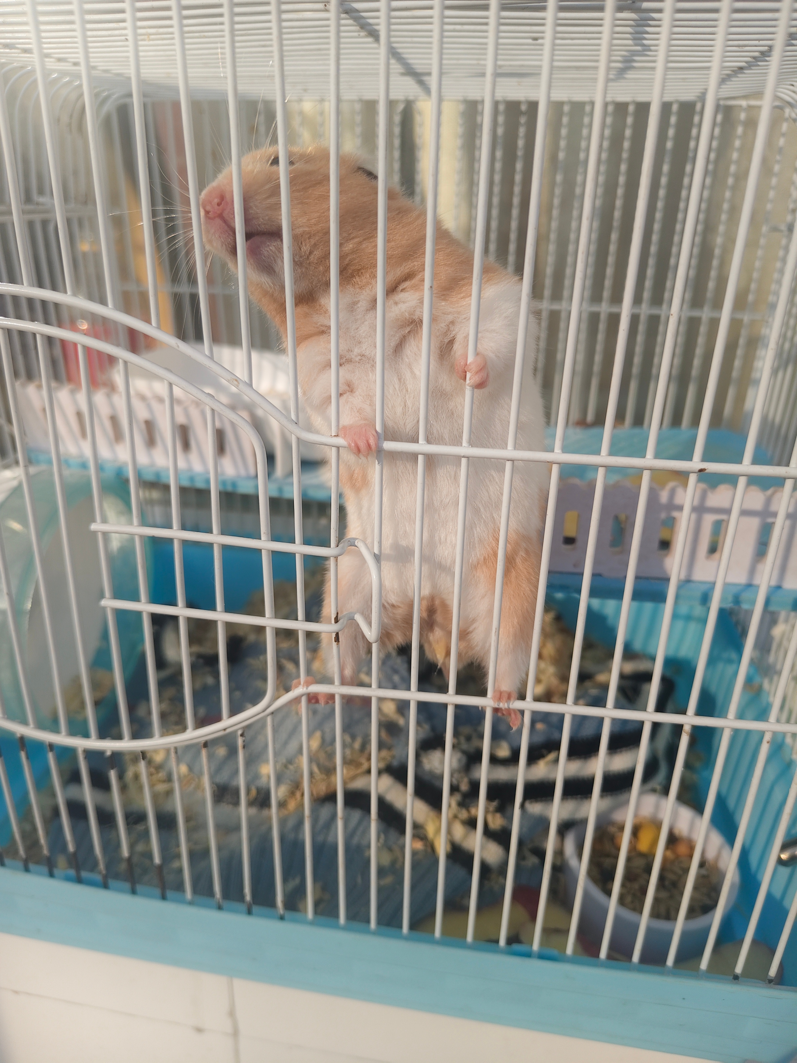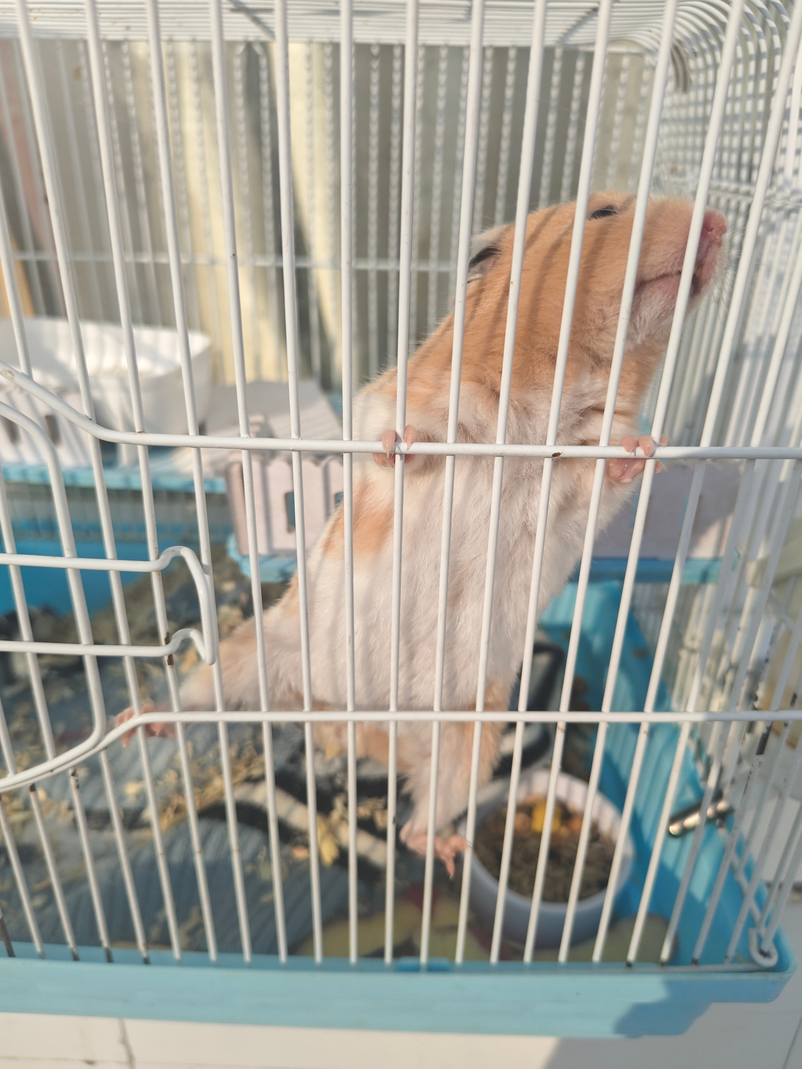 午后的阳光,是它探索世界的勇气。一块小小的食物,就是它大大的满足。这大概就是简单的小确幸吧。 抓住一只活蹦乱跳的金丝熊