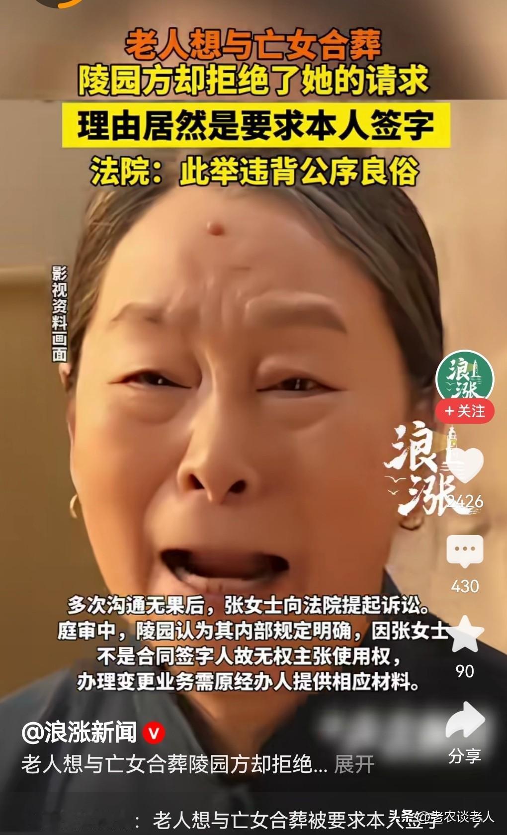 老人因合同“非本人签字”,所引起的麻烦和纠纷。 据媒体报道:近日,因一位偏瘫在床,行动不便的张女士,万万没想到,自己多年前委托亲属代签的一份与病世的独生女儿的合墓合同,如今却成了他实现心愿的阻碍,死后不能与女儿合葬在一起的心愿。 几年之前,张女士最疼爱的独生女,因病去世。 她沉浸在万分悲痛之中,根本无心无力亲自去处理与爱女的“合墓合同”后续事宜,便委托自己的亲属,与某陵园签订了该合墓购买的正式合同。 此事对张女士而言,这份合同不仅是一纸协议,而且是她自己将来能够与心爱的女儿“相聚”的唯一情感寄托。 该事情到如今,陵园方面表示,该合同不是张女士亲自签订的,是委托他人签订,必须由他人出具有效证件和材料证明此事,否则张女士无法享受与女儿“合墓合同”的使用权。 张女士曾多次与某陵园沟通无果后,便一纸诉状,向法院提起诉讼,把某陵园告上了法庭。 庭审中,某陵园认为,其内部规定明确,因为张女士不是该合同的签字人,因此她没有权利去主张该合墓的使用权的办理变更业务,需要原经办人,即委托合同签字人,提供该合墓合同的相应材料。 法院依法通过认真仔仔细细的审理后,明确指出,张女士当年委托他人,即亲属与陵园所代签的合墓合同,系其真实意愿所表达,合同是完全合理合法有效的。张女士作为逝者的母亲,是合同实质权利人,陵园此举系维护公序良俗。 法院最终判决,确认张女士完全能够享受拥有该合墓的使用权。 法庭判决以后,该陵园方面表示,将主动上门为张女士办理相关合墓合同的手续变更,张女士表示理解。 一场因“非本人签字”所引发的合同纠纷,在法律框架下得以化解,但是在社会上这种现象比比皆是,到处都有这种现象的存在。 因此,提醒老人们签订所有合同的时候,除了特殊原因,自己不能亲自到场签字画押以外,必须自己亲自到场签字,避免事后发生的没有必要的许许多多的麻烦和纠纷。