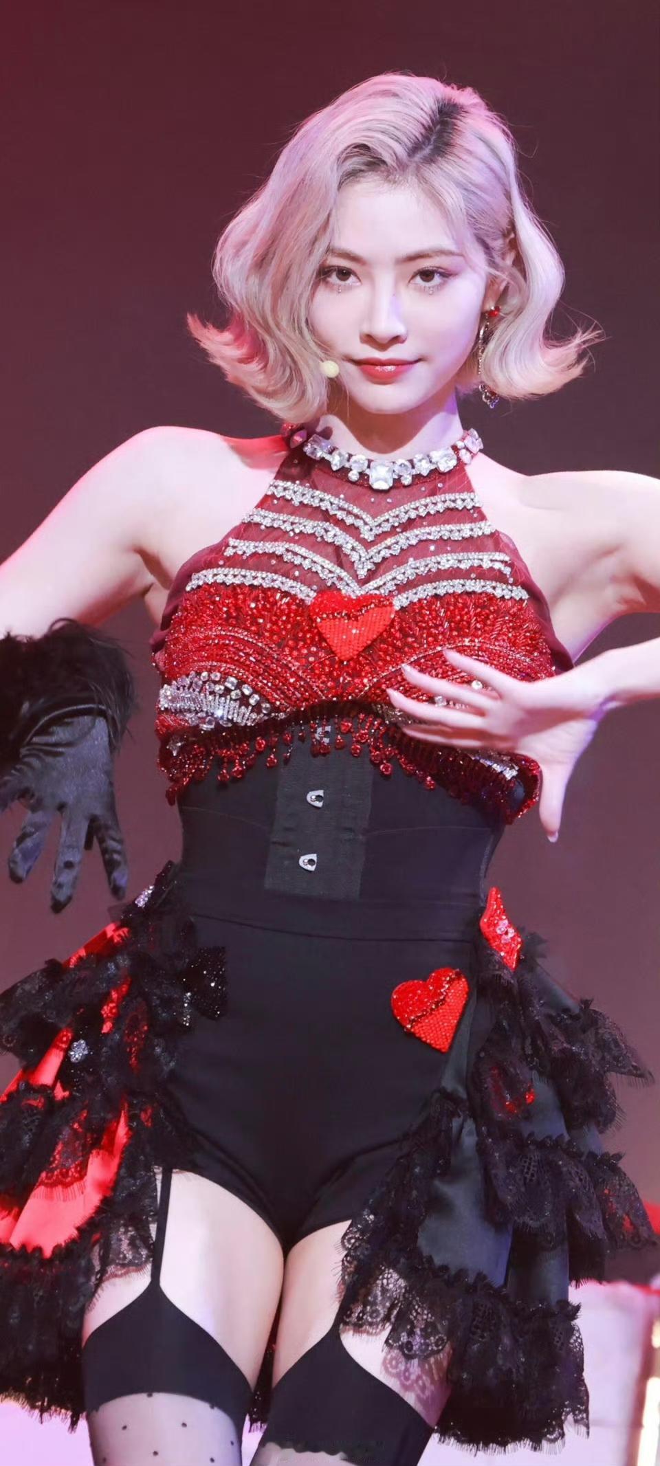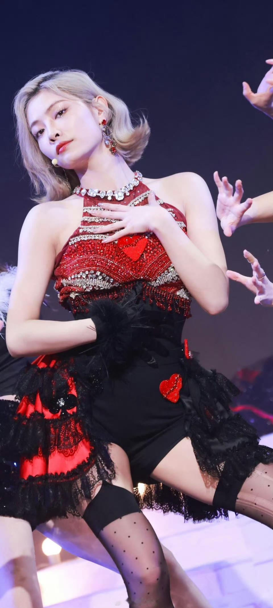 这个裙子应该还可以往上提一下吧,感觉想往下滑,但不得不说金钟瑞的身材比例好好。