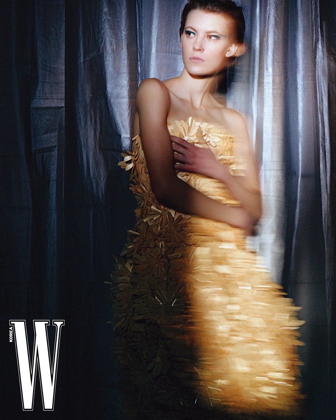 模特Dana Smith出镜韩版《W》2026年1月刊,带来全新Balenciaga by Pierpaolo Piccioli时装的演绎|摄影:Hyewon Kang/造型:Guilbe Lee