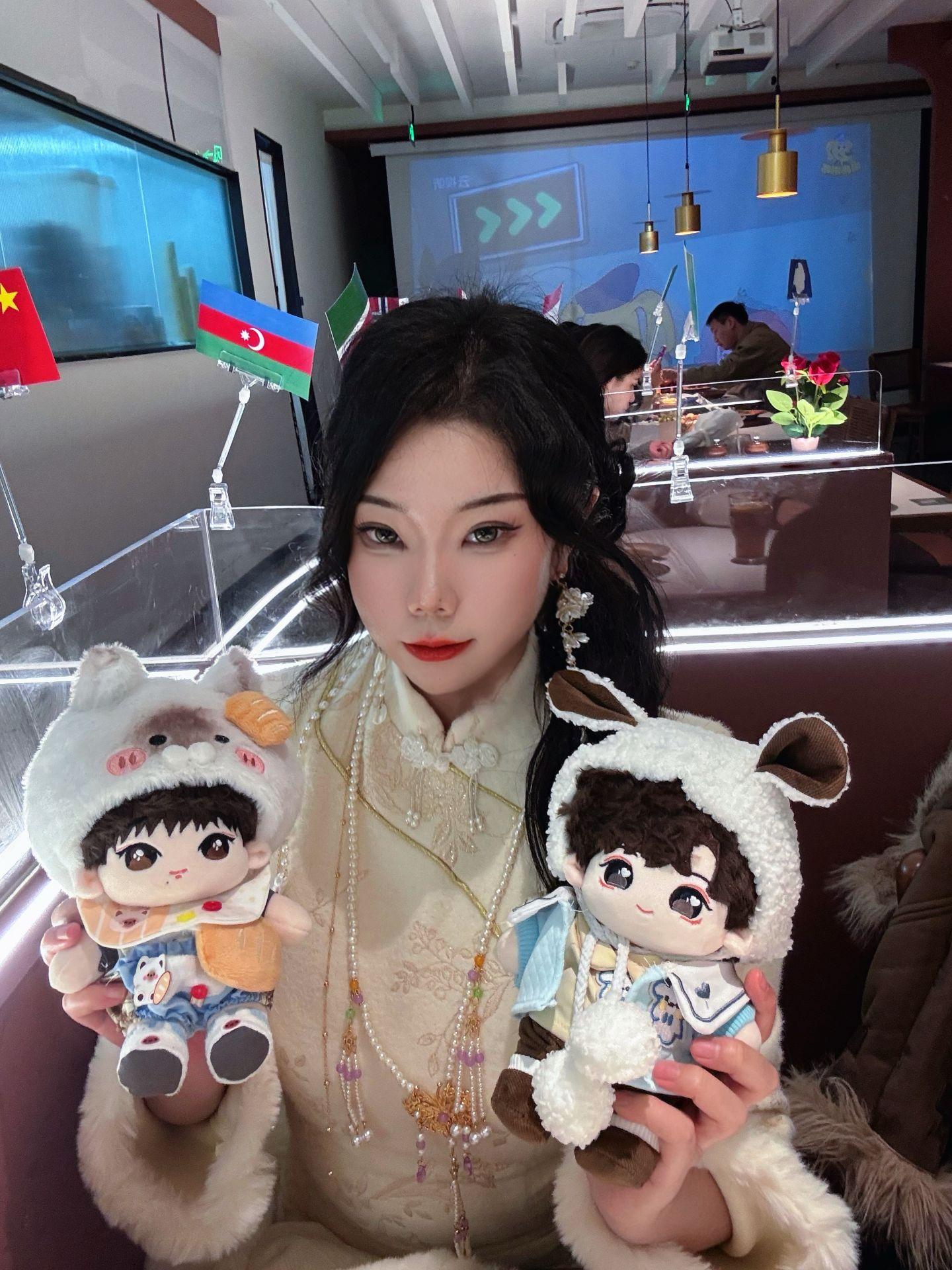 今天在路上和娃娃拍照 路过一个阿姨问我这俩娃娃是谁 我说是杨博文和王橹...