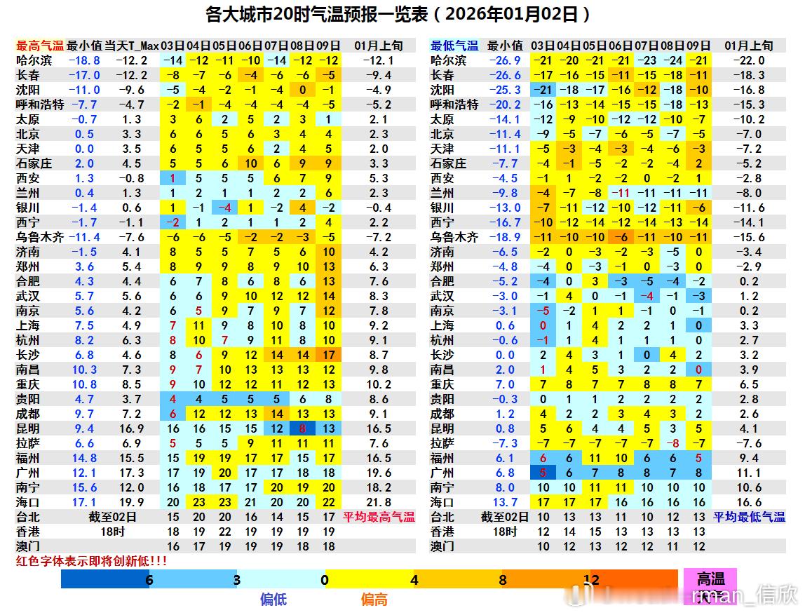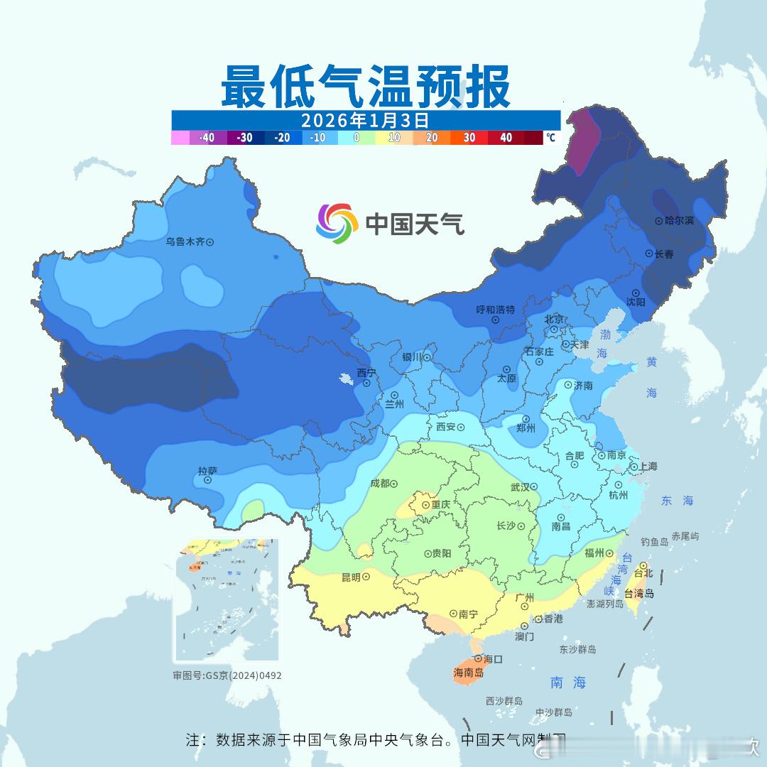 【气温波动向上】今天白天因为冷空气和阴雨影响,华南和西南部分地区出现降温。明晨在冷气团和晴空辐射降温影响下,最低气温0℃线将南下到浙江温州-福建南平-江西赣州附近一带。明晨江南华南部分城市气温可能创出立冬后新低:南京零下5℃、杭州零下1℃、上海0℃、南昌1℃、广州5℃、福州6℃。明天白天中东部地区普遍升温。4-5日还有冷空气活动,导致气温波动。总体来看,未来北方大多数地区,气温处于正常或偏高的水平。长江中下游地区,最高气温将从偏低逐渐转为偏高。华南最高气温接近正常,但未来江南华南的最低气温偏低。西南多阴雨雪、光照少,最高气温偏低。