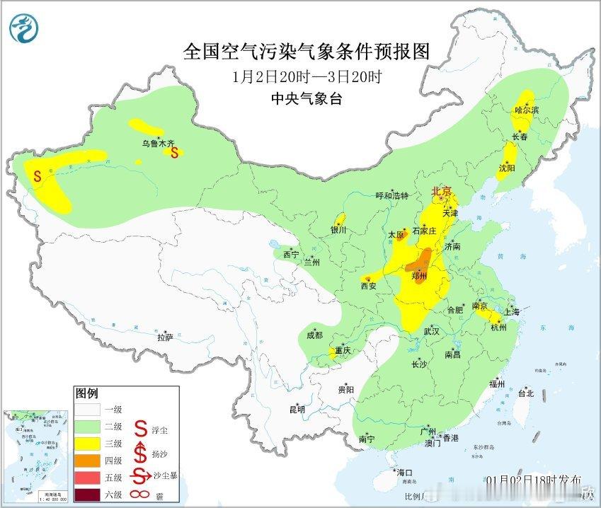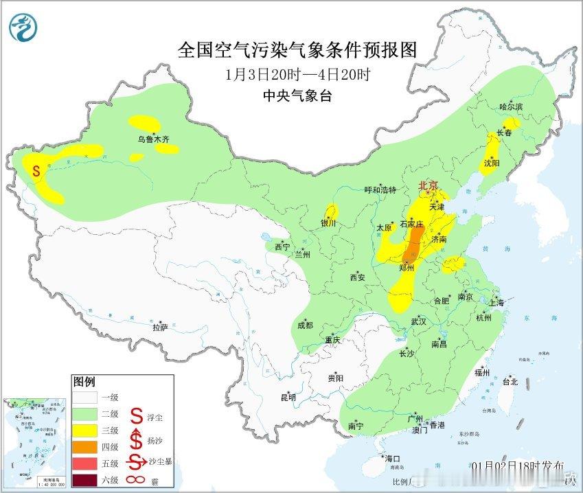 【雾和霾】今夜到明天上午,在河南、湖北、贵州等地可能还会零散出现大雾。另外从空气质量看,今天在陕西、山西、河南部分地区出现中度污染,太原出现重污染。今晚到明天,霾持续。4日-5日有冷空气东移南下,霾向东南转移,逐渐减弱。
