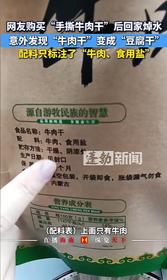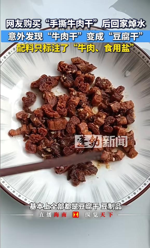 “还有什么不敢造假?”湖南,男子在展会上买手撕牛肉,因为喜欢吃清淡,把牛肉干放锅里焯水后,捞出锅时大吃一惊!男子直呼:“太缺德了!75元一斤的牛肉干你还造假!”网友:食品安全什么时候才能让人放心? 当看着原本紧实诱人的深色肉条在热水中迅速膨胀、松散,最终化为一锅软趴趴的“豆腐渣”时,这一幕荒诞的场景,让当事人的心态彻底崩了。 这不是魔术表演,而是发生在12月28日湖南某位消费者厨房里的真实遭遇。一位追求健康饮食的男子,本想通过简单的焯水处理来满足自己清淡口味的偏好,没承想这一动作,竟意外撕开了当下食品展销会上一角令人作呕的遮羞布。 这种名为“手撕牛肉”的产品,在没下锅之前,曾不仅一次打动过这位消费者的心。那天他正兴致勃勃地逛着当地的一场展会,对于很多家庭来说,这种展会往往意味着不仅能淘到新奇玩意,还能买到原产地直销的放心食品。 特别是当他在一个摊位前驻足,看到包装袋上醒目地写着配料仅含“牛肉、食用盐”时,这种极简的配料表简直就是健康食品的代名词。要知道,在科技与狠活泛滥的今天,敢宣称不添加防腐剂、添加剂,只用肉和盐的产品,无疑自带光环。 再加上商家极具煽动性的文案,“源自游牧民族的智慧”,这不仅仅是在卖牛肉,简直是在贩卖一种原生态的生活方式。这一套组合拳下来,男子没怎么犹豫,痛快地掏钱买了单。毕竟在展会的氛围烘托下,看着似乎诚意满满的商品,谁会随身带着显微镜去打假呢?然而,所谓的“游牧智慧”,到头来不过是不法商家以假乱真的“狡诈”。 这种造假技术之拙劣、性质之恶劣,令人发指。所谓的“牛肉干”,实际上就是大豆蛋白制品经过高浓度牛肉香精的浸泡和色素的染制。常温下,香精和色素附着在豆制品表面,又有硬度做掩护,普通人仅凭肉眼和简单的咀嚼,确实难以第一时间分辨。 特别是对于重口味爱好者,咸辣的调味足以掩盖豆腥味。但这位湖南大哥恰恰输在了一个“淡”字上,他嫌弃尝的那一口太咸,试图用热水“洗”去盐分,结果却意外洗去了这层昂贵的“画皮”。捞出锅的那一刻,牛肉纹理消失殆尽,只剩下一堆形似豆腐干的残渣,真正的牛肉成分在这个配方里恐怕连配角都算不上,完全处于失踪状态。 这一锅“假牛肉汤”,烫伤的不仅仅是消费者的钱包,更是对于食品安全的信任底线。这不仅仅是口感差异的问题,而是彻头彻尾的欺诈。当男子气得浑身发抖,重新审视购买回来的剩余产品时,又发现了一个更隐蔽的猫腻:那看起来正规的大外包装里,独立分装的小袋子上竟然完全没有印制配料表。 这种“内外有别”的包装策略,显然是商家刻意为之,以此规避法律风险,同时也方便混淆视听,将三无产品通过一个像样的外壳洗白。 事情曝光后,舆论场上除了对造假者的讨伐,也延伸出了关于价格与价值的激烈辩论。75元一斤的价格,在牛肉干市场究竟意味着什么?有懂行的网友指出,鲜牛肉的价格摆在那里,制作一斤风干牛肉通常需要三斤左右的鲜肉,成本倒推一下,75元要想买到纯牛肉干,在如今的市场行情下几乎是天方夜谭。于是,有人以此认为消费者是“贪小便宜吃大亏”。 但这种“受害者有罪论”显然站不住脚。75元一斤对于普通零食来说绝对算不上廉价,即便它够不上顶级风干肉的成本线,但这绝不能成为商家挂羊头卖狗肉的理由。 如果商家明确标注这是“牛肉风味豆干”,卖20元、30元一斤,那是你情我愿的买卖;但当你明晃晃地写着“牛肉、盐”,却卖给人一堆豆子,这就是赤裸裸的违法犯罪。商业诚信的底线,不应该随着价格的波动而弹性升降。 这起事件并非孤例,它折射出的是目前各类展销会、流动摊贩监管难的痛点。很多不法商家打一枪换一个地方,利用展会时间短、人流大的特点,疯狂收割一波韭菜后便销声匿迹。 从早些年夜市上用鸭肉甚至老鼠肉冒充的羊肉串,到现在展会上用大豆蛋白伪装的牛肉干,造假手段虽在“进化”,其贪婪的本质从未改变。以前好歹还要在鸭肉上贴几块肥羊油来伪装,现在竟然连那点真肉的成本都省了,直接用植物蛋白加化工香精,手段之猖狂,简直是把消费者的智商按在地上摩擦。 这位湖南男子无疑是幸运的,至少他在大快朵颐之前发现了真相。他愤怒地将视频发到网上,并且向相关部门投诉,不为别的,只为不让更多人咽下这口不明不白的“化学豆干”。 如果食品安全都要靠消费者回家拿锅煮、拿试剂测才能辨别真伪,那我们距离真正的“放心吃”,还有太远的路要走。在追求利益最大化的路上,那些丢掉良心的商家,迟早会在法律的沸水中,现出原形。 信息来源:舜网发布