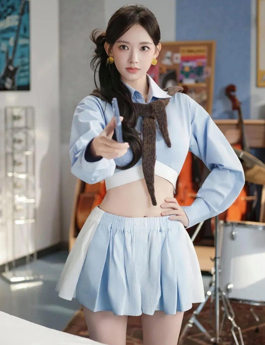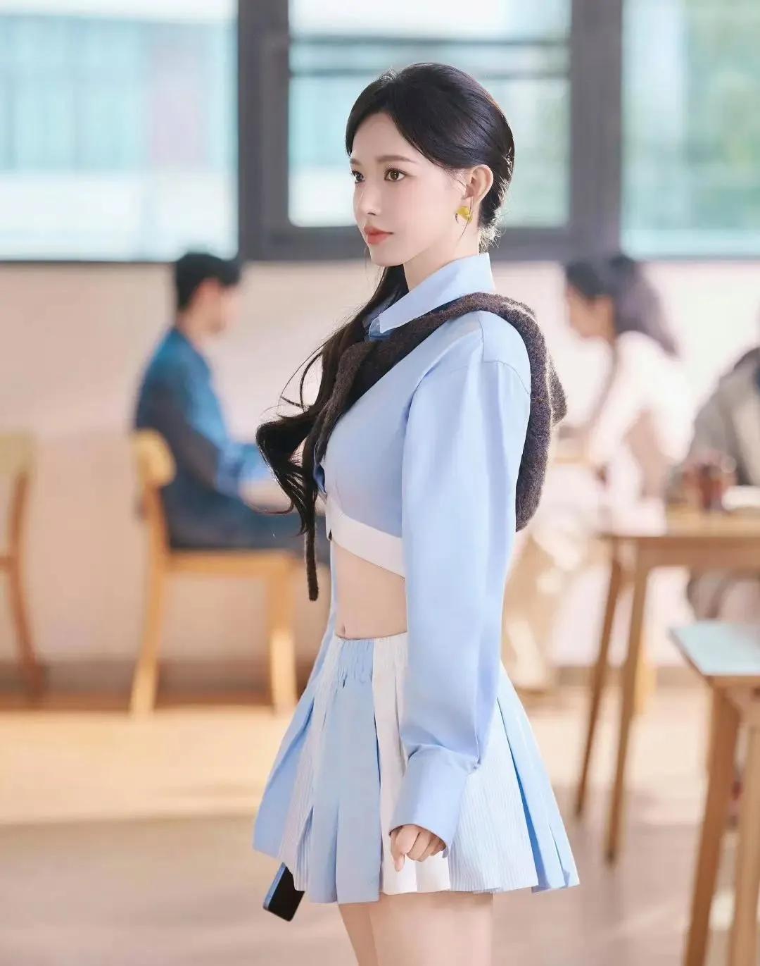 程潇校园风造型甜度爆表✨ 浅蓝短款衬衫搭配同色系百褶裙,完美展现青春活力。程潇的这套校园少女风穿搭,轻松勾勒出纤细腰线。 甜美的笑容与灵动的眼神,仿佛让人重返青涩校园时光。这种减龄又时尚的风格,简直是教科书级别的春日穿搭模板! 程潇 校园风穿搭 春日穿搭