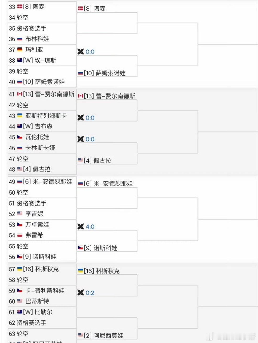 布里斯班WTA500单打签表(现在唯一还是二的64签500赛)萨巴伦卡🇧🇾、莱巴金娜🇰🇿、凯斯🇺🇸、奥斯塔彭科🇱🇻齐聚上半区,阿尼西莫娃🇺🇸、佩古拉🇺🇸、安德列娃🇷🇺、陶森🇩🇰镇守下半区,前16种子首轮轮空!澳网2026