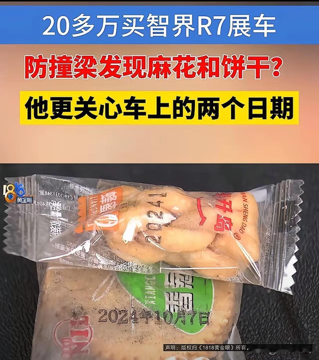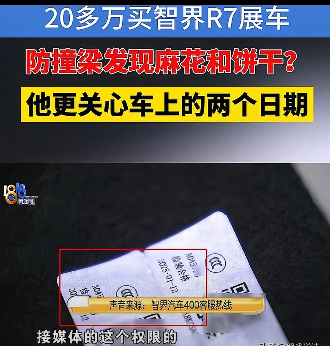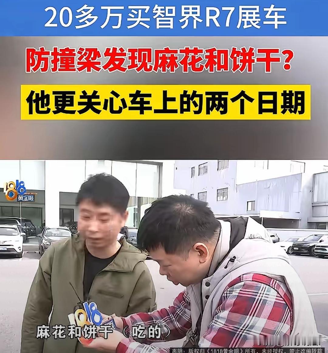 花29万买智界R7展车,防撞梁藏零食、座椅日期“穿越”?4S店的操作比坑人更离谱! 刘先生明知是展车仍下单,忍了小瑕疵,却没料到藏着大猫腻。防撞梁里的麻花饼干,4S店甩锅老鼠,取出后异响竟消失;2024年出厂的车,装着2025年才合格的座椅,这根本不是“展示痕迹”。 更气人的是,索要PDI检测报告被拒10个月,监管介入也拒不解释,门店换门头避而不见,车企客服光承诺不办事。 展车不是次品代名词,隐瞒维修、拒不提供关键文件,早已涉嫌消费欺诈。 汽车销售的底线是诚信,知情权不是摆设。你买车时会特意核查部件日期、索要检测报告吗?评论区分享你的避坑经验~