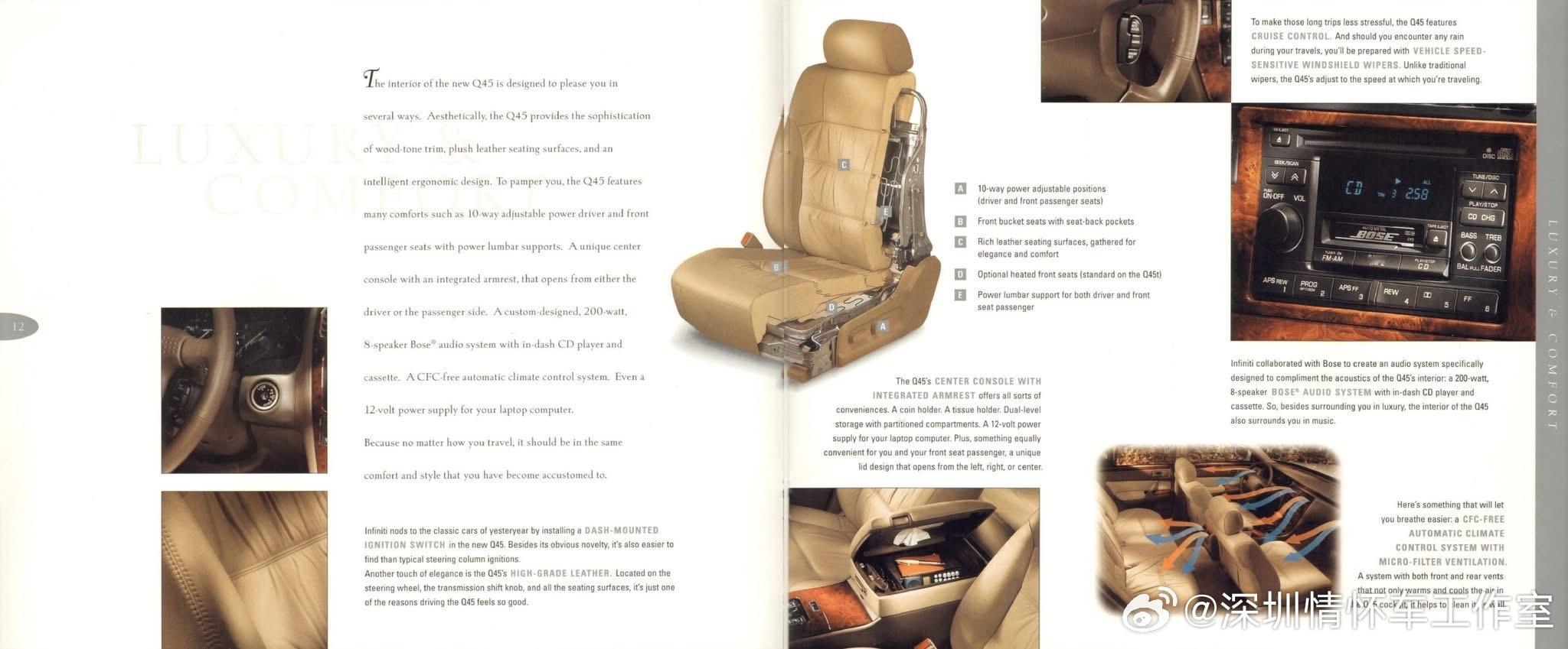 1997年英菲尼迪Q45是第二代Y33(1996-2001),定位豪华行政轿车,北美首发,主打舒适与科技,对标奔驰S级/宝马7系/雷克萨斯LS400。1996年7月发布,1997年上市,从初代G50的“性能优先”转向“舒适豪华”,基于日产Cima后驱平台开发。采用家族格栅+宝石大灯,线条更圆润优雅,内饰增木纹与高级皮革,强化豪华感;Q45完成从性能旗舰到豪华舒适的战略转向,奠定英菲尼迪北美豪华定位。但该车型销售情况并不理想,主要是英菲尼迪 品牌溢价不足、德系与雷克萨斯强势,导致其未能成为市场主流,却成为日系豪华转型的重要见证。