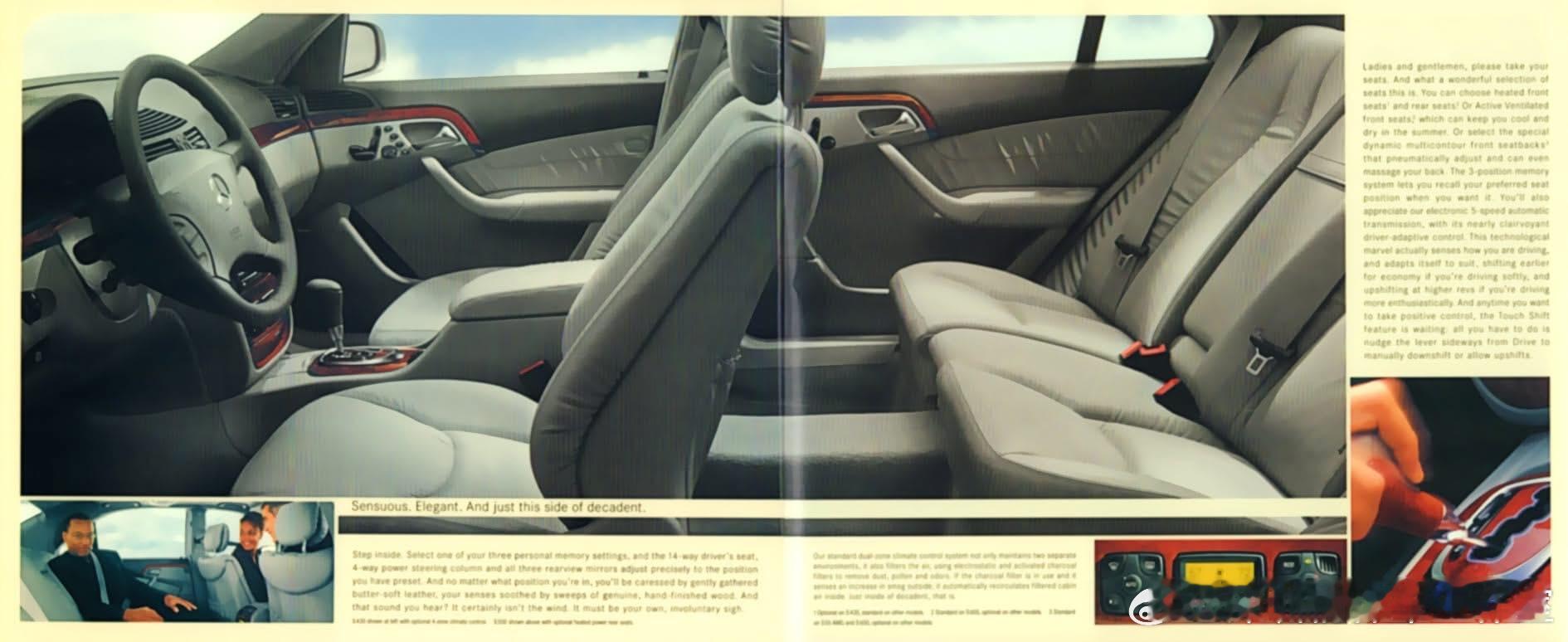 奔驰W220(1998-2005)是第四代S级,俗称“蝴蝶奔”接替W140“虎头奔”,全球总销量484,683辆,略超W140,是跨世纪的豪华旗舰标杆。•1998-2005累计484,683辆;2000年销量最高达8.8万辆,1999、2001年也超8万辆。S 500最畅销,长轴版超10.8万辆,含短轴与4MATIC版合计约14万辆,占总量近30%。美国为第二大市场;中国市场中S级占奔驰总销量超40%,S 350是商务热门;长轴版更受青睐。同时生产S 55/S 65 AMG性能旗舰,S 600(V12)、Pullman加长版等满足高端定制需求。• 设计转型:Steve Mattin操刀,由W140的方正霸气转为圆润优雅,车身更小但内部空间更大,开启奔驰新设计语言。该车型的历史突破:• 安全里程碑:2002年首发PRE-SAFE预碰撞安全系统,碰撞前收紧安全带、调整座椅、关闭车窗,成为豪华车安全标配。• 底盘与舒适:标配AIRMATIC空气悬挂、主动车身控制ABC、主动通风座椅,开创豪华舒适新基准。• 智能驾驶先驱:推出DISTRONIC限距巡航,结合雷达实现自动跟车,是现代ADAS的早期雏形。• 动力创新:V12车型配气缸自动关闭,巡航时关闭6缸以节能;AMG版本提供550马力以上性能,树立旗舰性能标杆。• 人机交互:搭载COMAND系统,集成导航、影音与车辆控制,奠定豪华车中控交互范式。