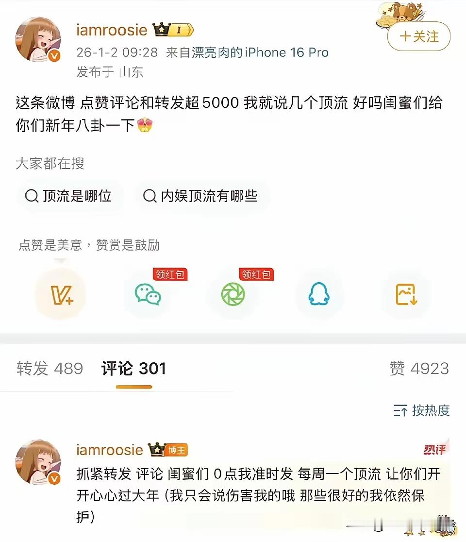 内娱版D社?iamroosie司晓迪的爆料神话是真是假?一句“可汗大点兵”,司晓迪凭一己之力搅动内娱风云。檀健次、林更新、范丞丞等顶流接连被点名,合照、聊天记录轮番轰炸,架势堪比韩娱D社。可她的爆料缺实锤、多反转,辟谣声浪盖过爆料热度,更被指蹭流量无底线。看似“硬核爆料”,实则更像一场自导自演的闹剧。你觉得她是内娱真·爆料人,还是流量至上的跳梁小丑?目前鹿晗、檀健次、范丞丞、林更新、黄明昊、王安宇工作室均已声明