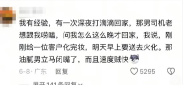 我有经验,有一次深夜打滴滴回家,那男司机老想跟我唠嗑,问我怎么这么晚才回家,我说,刚刚给一位客户化完妆,明天早上要送去火化。那油腻男立马闭嘴了,而且速度贼快