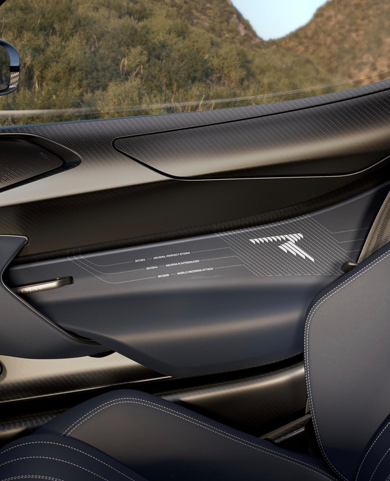 跑车大v聊车汽车美图 Rimac Nevera是由克罗地亚汽车制造商Rimac Automobili设计和制造的一款全电动跑车。作为地球上最快的电动跑车,综合马力超过1900hp,峰值扭矩2360N•m ,百公里加速1.97s,最高时速可达412 km/h。Nevera车长4700mm、车重2150kg,配备四轮独立电机、米其林CUP 2R轮胎、碳陶刹车碟高性能高性能六活塞卡钳,有四种驾驶模式,内部采用碳纤维一体式座舱设计。图中这台是创始版,限量10台。