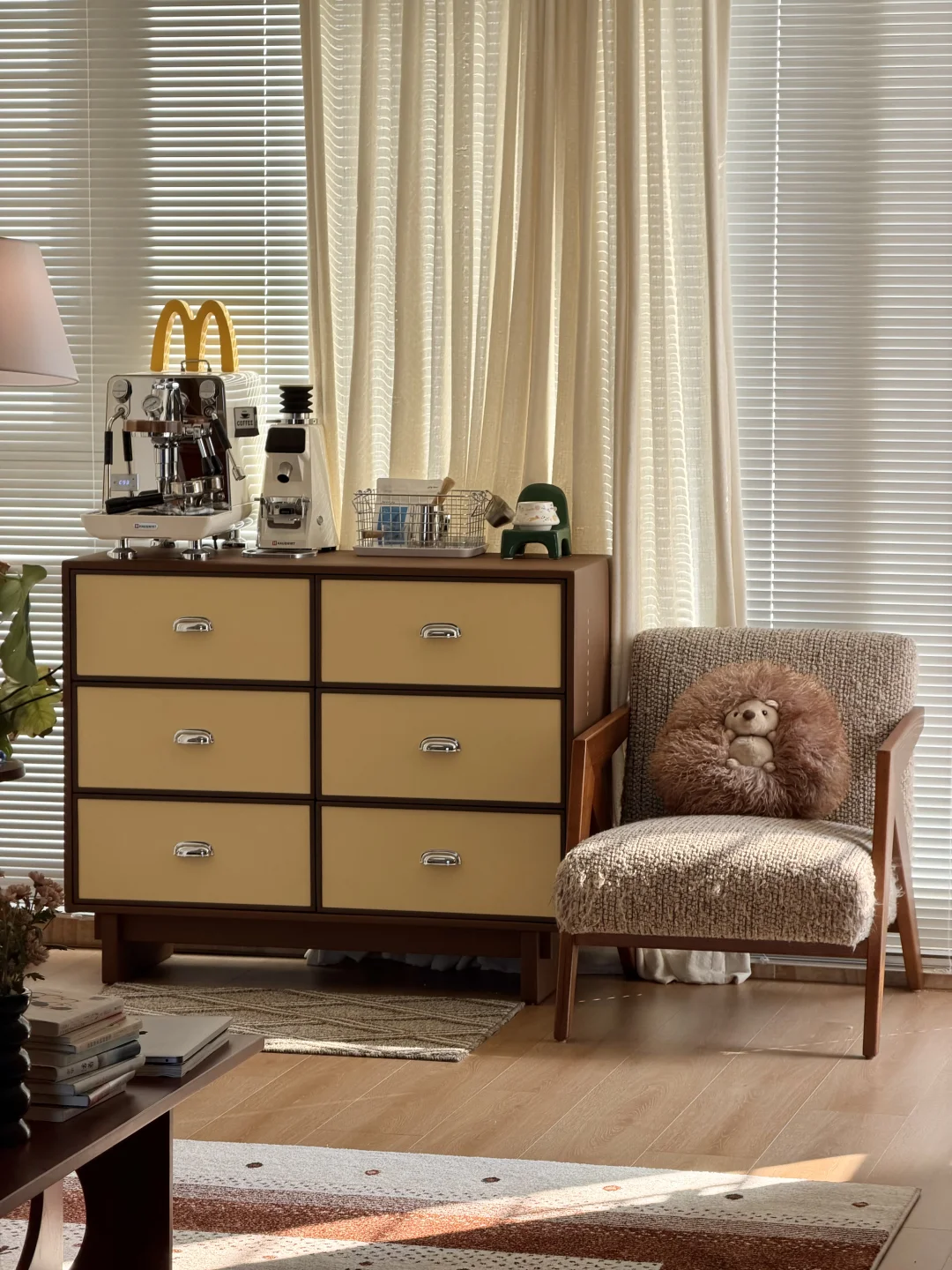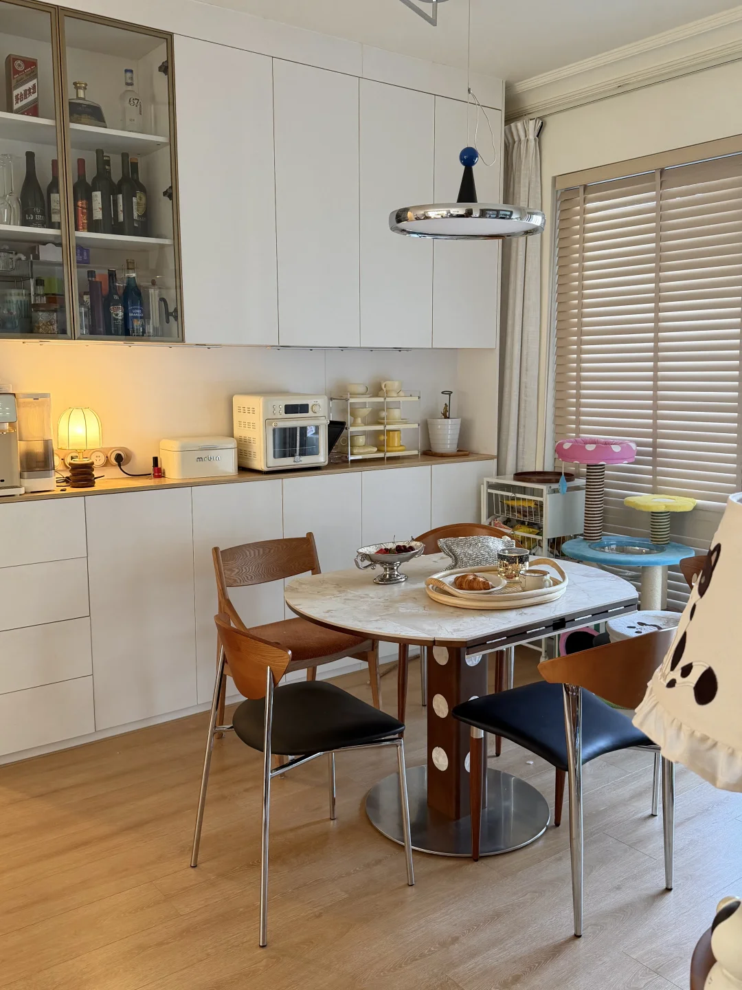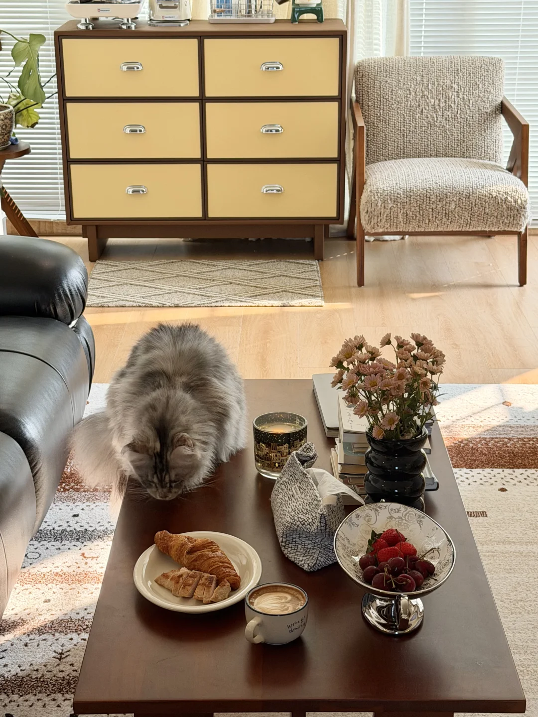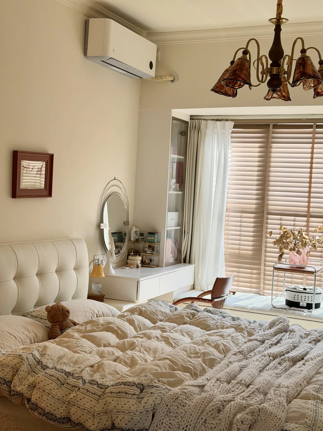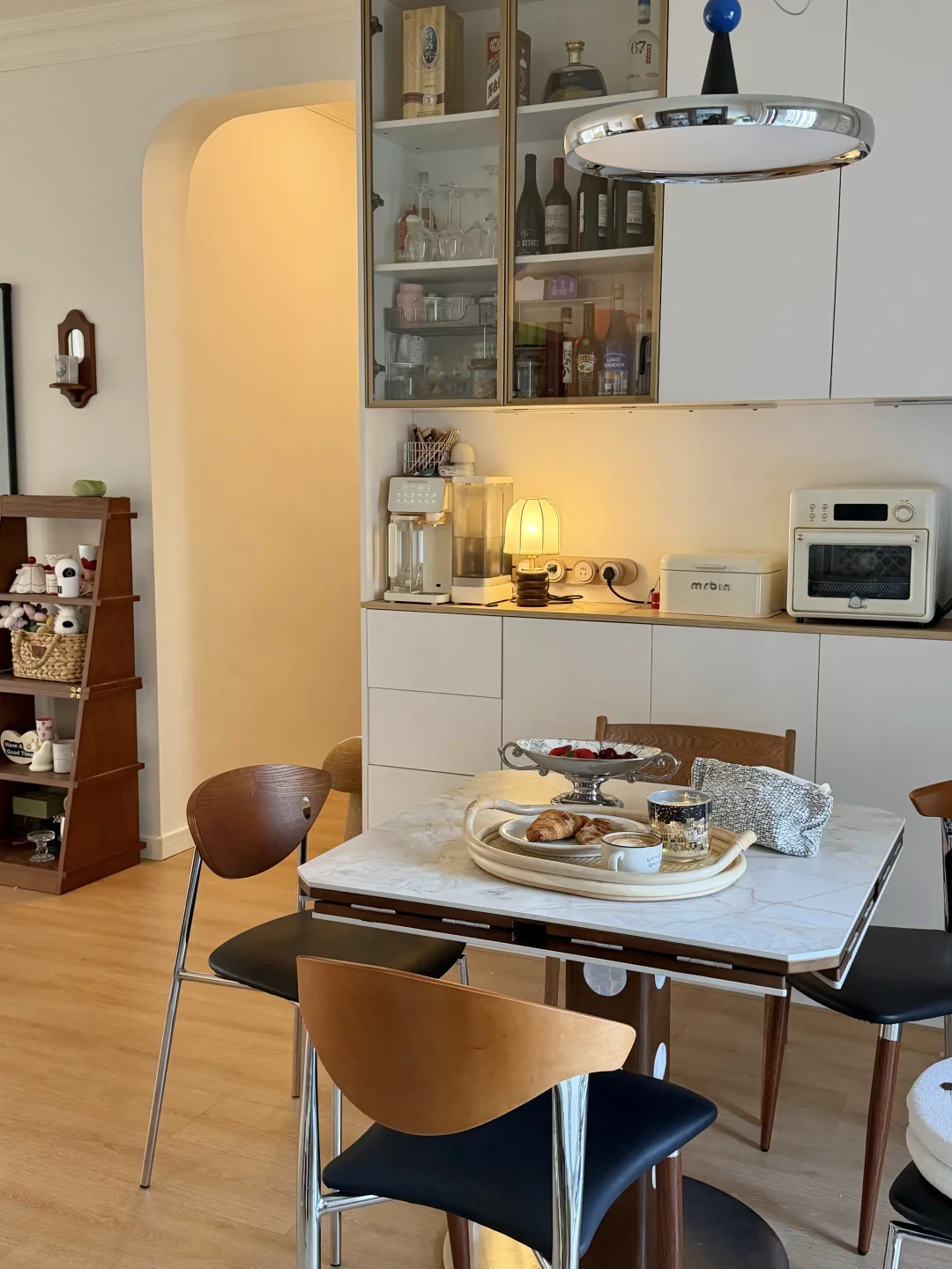 我家是精装改造成现在的样子。 硬装没改,后期封窗,阳光是可以直接洒进客厅,暖洋洋的。 整体基调都是简单暖白色,家具都是实木黑白棕色调。 整体是温馨的中古风~很耐看
