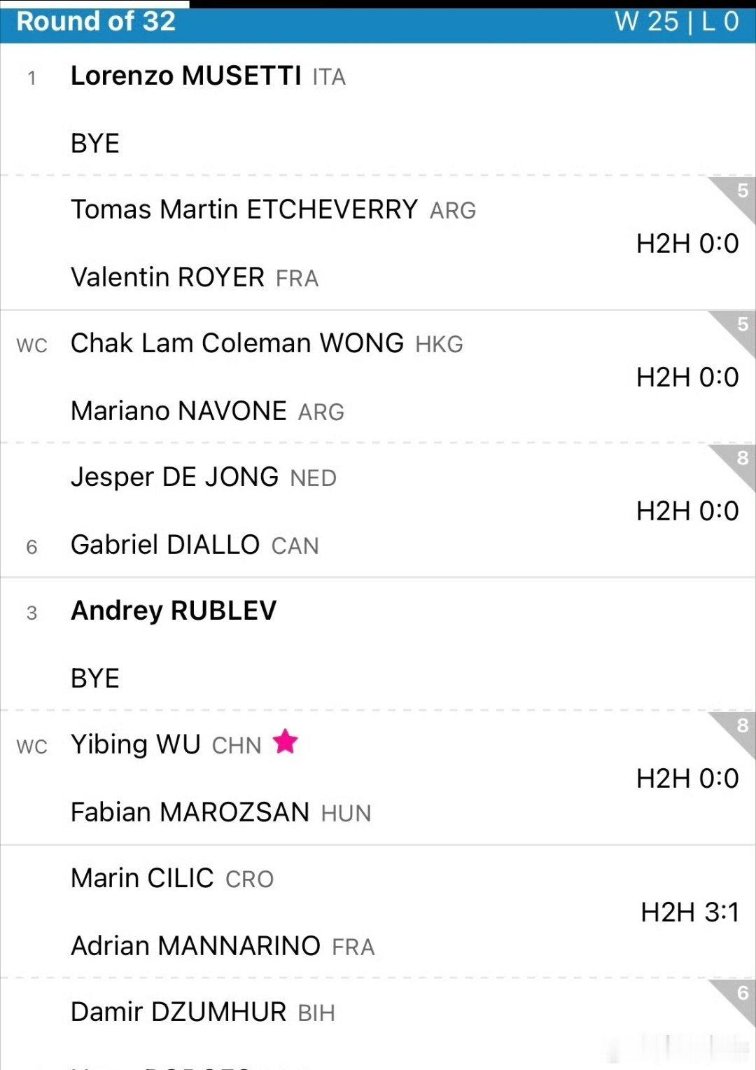ATP250🇭🇰香港站男单签表:[WC]🇨🇳吴易昺vs🇭🇺毛罗然