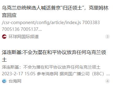 泽连斯基摊底牌了!俄罗斯可以死心了,美国也可以死心了,欧洲可以放心了。泽连斯基强硬表示:无论在任何情况下,乌克兰都不会在法律上承认俄罗斯对乌领土的占领,一寸土地都不让,半步妥协都不谈! 麻烦看官老爷们右上角点击一下“关注”,既方便您进行讨论和分享,又能给您带来不一样的参与感,感谢您的支持! 乌克兰上半年发起的反攻未能达到预期目标,仅推进不足二十公里,战场陷入胶着,而西方援助也逐渐进入疲劳期,部分国家民众开始质疑援乌的有效性,美国国内党争更是让新的援乌法案迟迟难以推进。 在这样的背景下,泽连斯基的强硬表态并非一时冲动,而是基于现实局势的战略选择。他多次在公开讲话和专访中强调,领土问题关乎国家主权和民族尊严,任何形式的妥协都等同于对侵略者的纵容,只会让俄罗斯得寸进尺,未来可能卷土重来。 这一立场并非首次提出,早在 2023 年 2 月俄乌冲突一周年之际,泽连斯基就曾对 BBC 表示,不会为潜在和平协议放弃任何乌克兰领土,而到了冬季,面对更复杂的战场环境和国际局势,他的态度变得愈发坚决。 对于乌克兰民众而言,泽连斯基的表态无疑是一剂强心针。冲突持续近两年,乌克兰民众承受着战争带来的巨大伤痛,能源设施遭袭、家园被毁、亲人离散的困境让不少人的抵抗意志面临考验。同时,乌军司令扎卢日内此前曾公开表示冲突已陷入僵局,引发了民众对战争前景的担忧,甚至出现了对政府决策的质疑声音。 在这样的关键节点,泽连斯基通过明确且强硬的领土立场,向民众传递了主权不可动摇的核心信号。他要让所有乌克兰人相信,政府绝不会为了短暂的和平而牺牲国家根本利益,这种坚定态度有效提振了全国士气,也避免了因领土退让可能引发的政治信任危机,凝聚了国内对抗俄罗斯的共识。毕竟对乌克兰民众来说,守护每一寸土地就是守护自己的家园和未来,泽连斯基的表态精准回应了民众的核心诉求。 这一 “半步妥协都不谈” 的明确态度,也给美国及部分欧洲国家吃了一颗定心丸。自冲突爆发以来,西方对乌援助总额已超过 2000 亿美元,其中美国援助近 700 亿美元,欧洲及其他国家和机构援助超 1000 亿美元,但长期的投入让不少国家开始出现援乌疲劳症。尤其是 2023 年冬季巴以冲突爆发后,美欧的精力和资源被分散,俄乌冲突的关注度有所下降,乌克兰面临被 “遗忘” 的风险。 泽连斯基的强硬表态,清晰界定了乌克兰的抗争目标,让西方盟友看到了乌克兰坚持到底的决心,也为他们的援助提供了明确方向。随后,美国在 12 月宣布了两轮对乌军事援助,分别为 12 日的 2 亿美元和 27 日的 2.5 亿美元,包括防空系统、火炮弹药、反装甲弹药等关键装备;北约也在 10 月承诺加大援助力度,比利时、丹麦将提供 16 架喷气式飞机,德国推出 10 亿欧元援助计划,英国、加拿大等国也纷纷跟进提供冬装、扫雷设备等物资。这些援助的落地,正是西方对乌克兰坚定立场的回应,稳定了盟友间的支持信心。 对于俄罗斯而言,泽连斯基的声明无疑是一次沉重打击。自冲突爆发以来,俄方通过军事行动控制了乌克兰部分领土,并试图通过政治手段谋求这些领土的法律认可,但泽连斯基的强硬表态彻底堵死了这一可能。 克里姆林宫发言人佩斯科夫曾多次表示 “俄罗斯未侵占任何乌克兰领土”,并强调克里米亚归属问题已 “永远划上句号”,但乌克兰的坚定立场意味着俄方的目标难以实现。原本俄方或许还期望通过战场优势迫使乌克兰在谈判桌上让步,但泽连斯基明确拒绝任何领土妥协,直接削弱了俄方的谈判筹码。 更重要的是,乌克兰的态度也向国际社会传递了明确信号,俄方在国际上的领土主张面临更大的舆论压力。 信息来源:环球时报,外媒:泽连斯基称,乌克兰自决权是谈判的关键“红线”